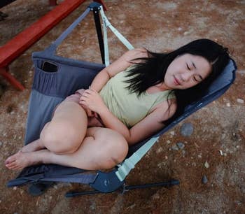 Promising review: "The construction of this chair is amazing and so comfortable, we loved it on our camping trip. Can’t recommend a better chair for a cozier camp night." —Lizzy Bee