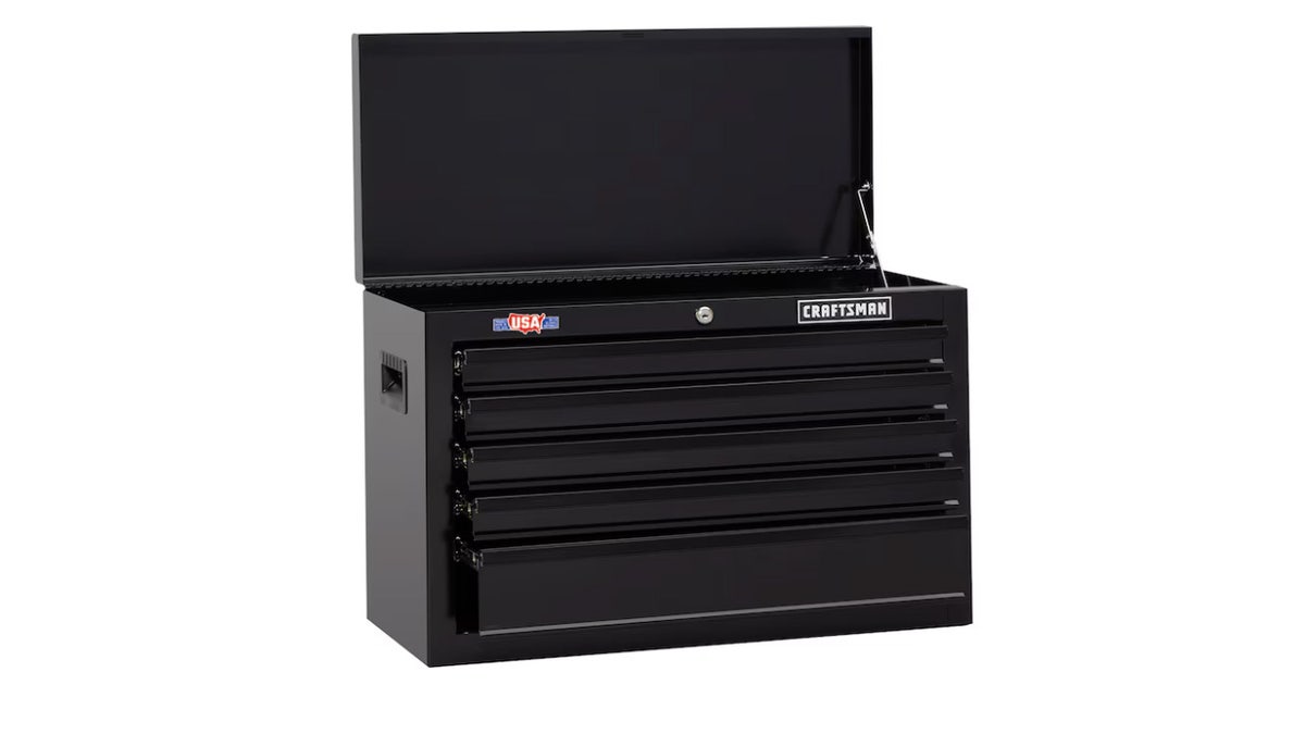 This five-drawer tool chest is made in the U.S. and built to last. Each drawer holds 50 pounds of tools, while the locking system secures everything in place.