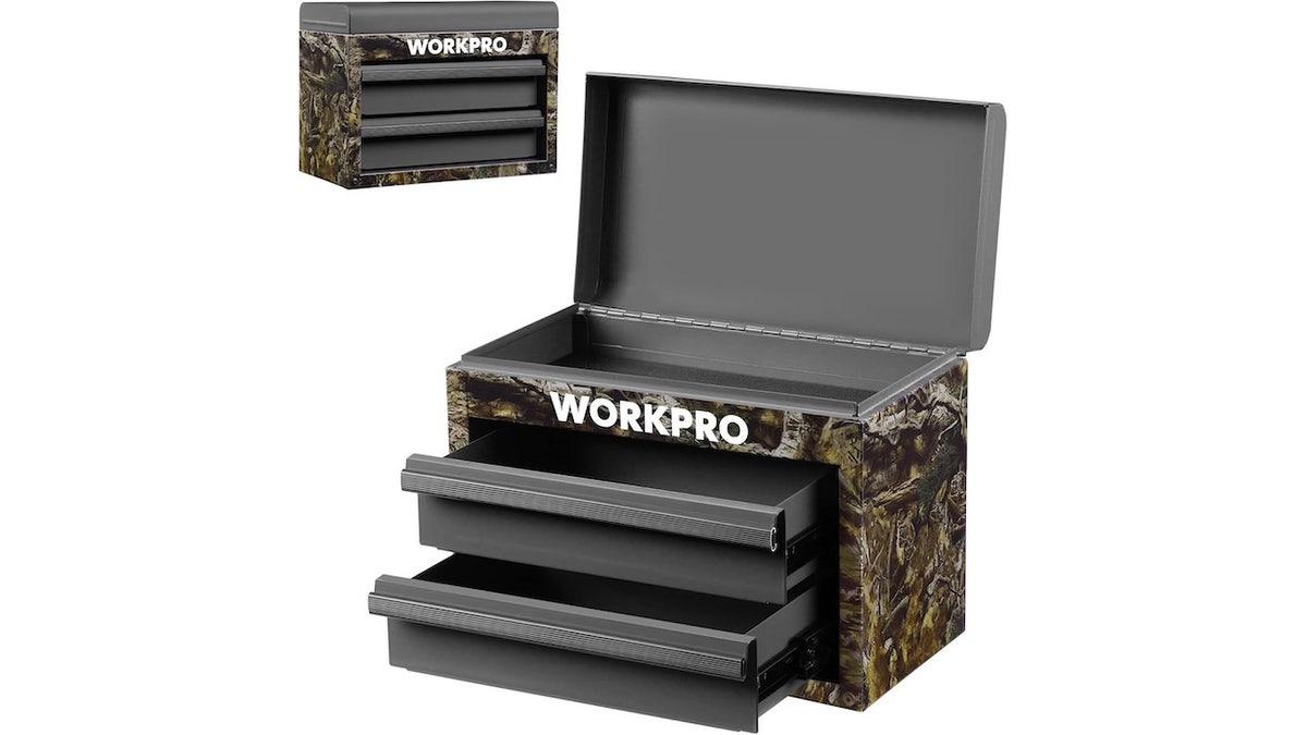 If you’re always tackling projects, this mini toolbox keeps your most-used tools within reach. PVC drawer liners stop items from rolling around, while the camo print adds a rugged, outdoorsy look.