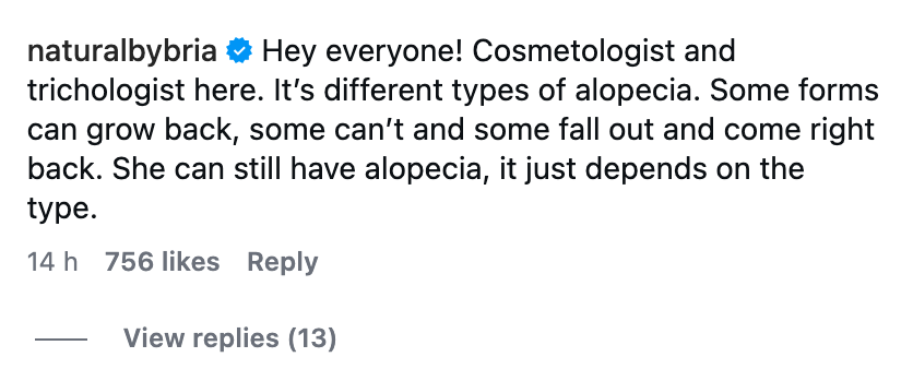 “Alopecia grew back I guess,” another person wrote, while one hairstylist even agreed that they didn’t believe Jada.
