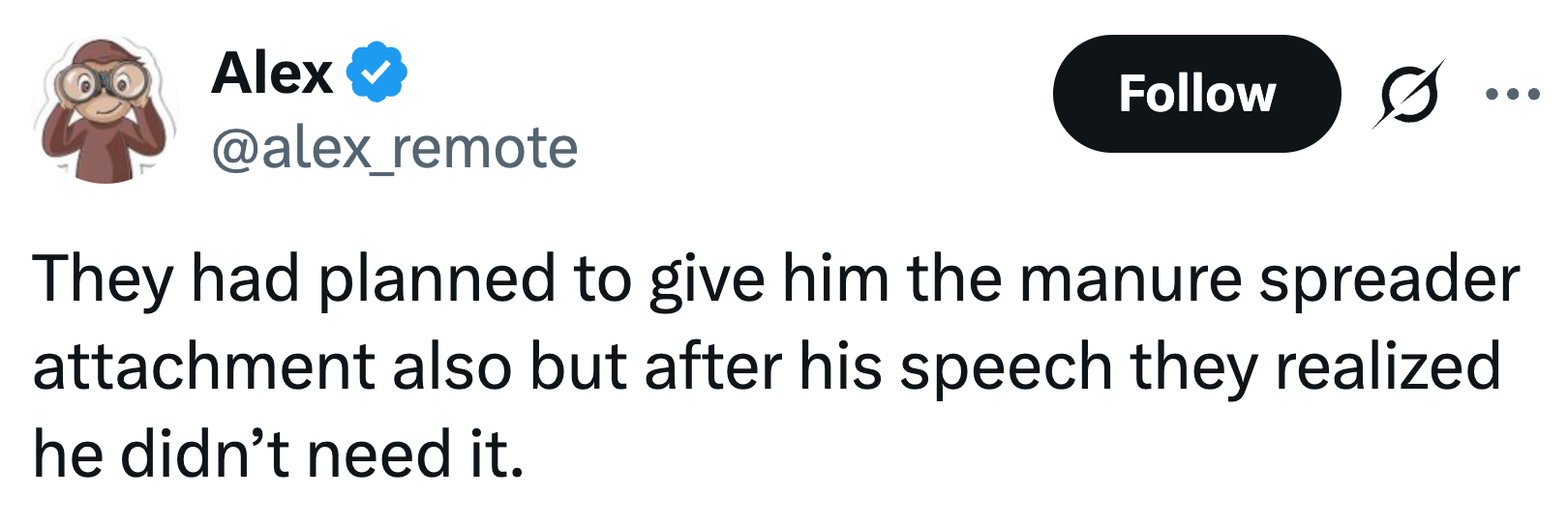 Trump: Tonight I'm making a little speech at 9 o'clock. And basically I'm gonna uhh tell everybody how great I am. Whatta phenomenal job I've done pic.twitter.com/sLSYQHCHqy