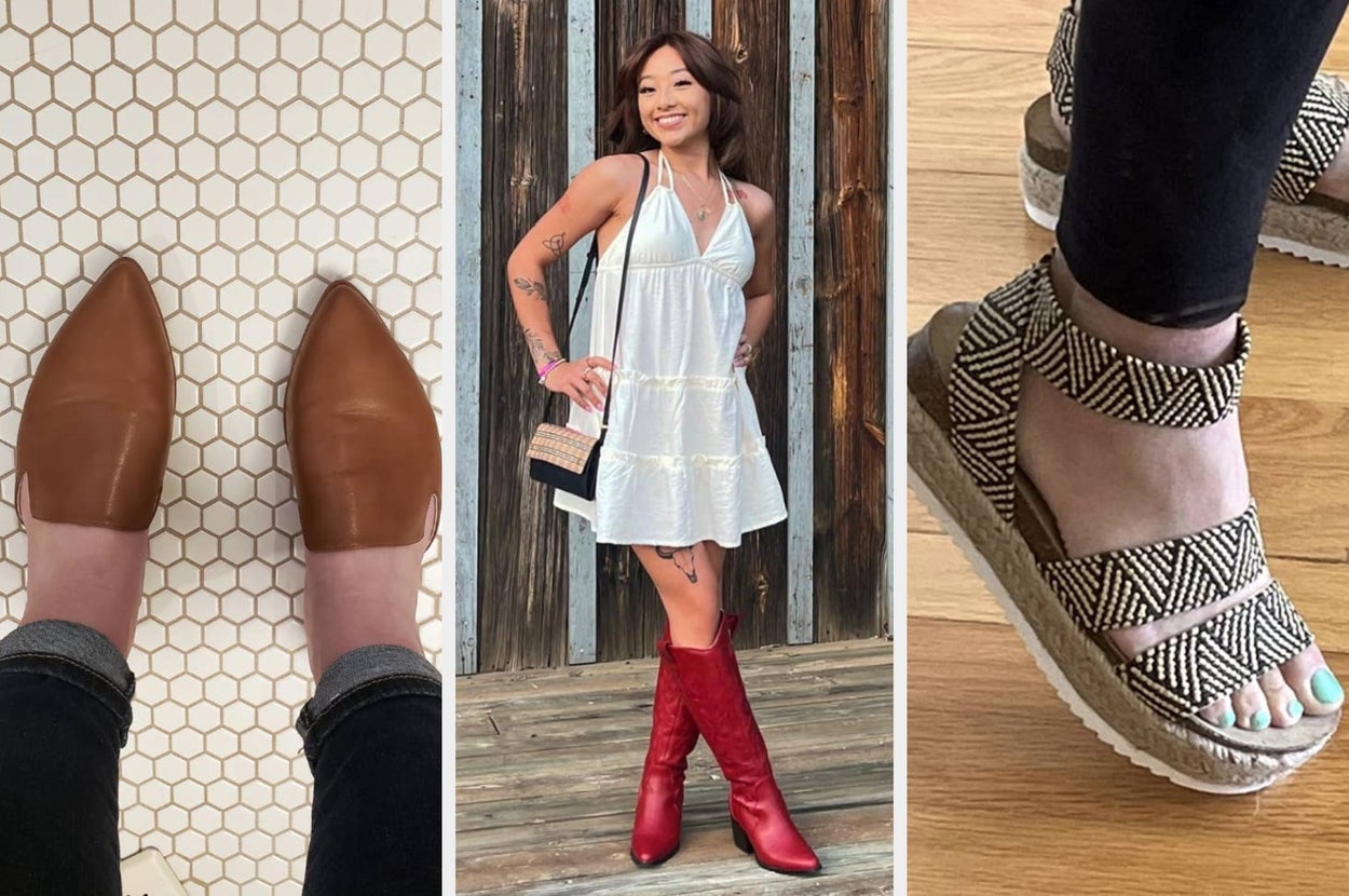 We hope you love our recommendations! While every product is independently chosen by our editors, BuzzFeed and our publishing partners may collect a share of sales or other compensation from the links on this page. You can read more about how our affiliate partnerships work in our Editorial Standards & Ethics Guide. Your toes might start to protest any time you try to wear another pair of shoes. Promising review: "I'm shocked with my purchase! I needed a pair of heels to wear to a wedding. Seeing as I don't get out much I did not intend on spending a lot of money on them. Not only do these shoes look amazing, but they feel amazing as well! I was in them not only during the reception, but the ceremony as well. They were so comfortable and did not leave blisters or leave my feet sore. I danced in them all night and will keep this brand in mind the next time I need to purchase any shoes." —Jennifer Hanns Get it from Amazon for $33.99+ (available in sizes 5–12 and 21 colors/styles). Promising review: "These are a great price. They are wide-calf approved. I love the zipper on the side. It makes them easy to open. Highly recommend." —Angela K "True to size! I was worried they’d be a bit tight as I have very wide feet, but they fit great. Comfortable as well. Walked several miles in them without breaking them in. For the price, you really can’t beat them!" —Lisa O. Get it from Amazon for $39.98+ (available in women's sizes 5–11, including wide, and eight colors). Promising review: "I walk a lot. I’m on my feet a lot, and I’m in my 60s. It’s really hard to find comfortable walking shoes. Most do not hold up to their claims in my opinion. I now own two pairs of these. I walk an average of 3–5 miles a day and spend a lot of time working in my flower beds. I wear them for an average of 12 hours a day. These have held up really well to the work I put them through, and they are so comfortable. Highly recommended!" —PN Get it from Amazon for $39.95+ (available in sizes 5–11 and 15 colors). Promising review: "I bought these to match a hot pink dress I purchased and they matched the dress perfectly! They are very comfortable, I wore them to a party for eight hours and had no issues with pain the next day. The straps fit nicely, not too loose or snug. Would definitely purchase in other colors!" —Mariana Get it from Amazon for $49.90 (available in sizes 5–13 and in 12 colors). Promising review: "Hard to find a woman's slipper that isn't too frilly, fluffy, puffy and has a back on it. These fit like a glove. Love the nonskid sole seems durable. It's the best slipper I've owned. Buying as Xmas gifts for everyone this year! They are so comfortable and warm. If I want a slip-on it converts to that. But as a woman, I find that most slippers either look like bedtime Uggs, slide off the feet, or have fur everywhere. These are amazing. Don't hesitate. I bought smaller than my size because my slippers tend to stretch out and then flop around. These are snug, but they are so soft it doesn't bother me." —Jodi Get it from Amazon for $16.59+ (available in women's sizes 4.5–13, men's sizes 3–11, and 23 colors). Promising review: "LOVE THESE SHOES!!! I have a wider foot and can’t wear many trendy shoes, but I am in LOVE with these!! They are truly the most comfortable pair of sandals I have ever owned, no exaggeration. I wore them for an entire wedding, no complains. Walked two miles in them on vacation, no complaints. ran through a lightning storm in them, NO COMPLAINTS!! I would run a marathon in these if I needed to. Ankle strap is comfortable and stretches enough to put my foot in but fits just right to hold the shoe on comfortably. The two foot straps don’t stretch, but aren’t too tight. These feel even better than name brand shoes! I LOVE THEM!!! BUY THEM!!" —tyler fischer Get it from Amazon for $42.74+ (available in sizes 6–11, including wide sizes, and six styles). Promising review: "I usually have a hard time finding comfortable and cute shoes that fit my wide feet, but these are perfect. They get comfier every time I wear them, and I wear them three to four times a week for work. My feet don’t slide, and they don’t make any weird noises." —Tiffany P Get them from Amazon for $34.97 (available in sizes 5–12 and two styles). Promising review: "These slides are so cute and look great with lots of outfits. They are a little wide but when summer heats up, they will fit fine. Love them!" —Girlygirl Get it from Amazon for $34.95+ (available in sizes 5–11 and in four colors). Promising review: "Reaching for these sandals more and more because they’re comfy, cute and, elevate my outfits! They didn’t require any breaking in and I’ve worn them for an entire day out and had no issues with long-term wear. Fit was true to size. Going to get another color since I love them so much!" —Nidhi Get it from Amazon for $29.69+ (available in sizes 6–10 and 25 colors). Promising review: "I did not expect this to be so comfortable and cushion support. It was like walking on clouds for sure. This is a true to size shoe for sure. Ordered these for hike walks and trail biking to see how comfy indeed it was. Little snug on the entry since it doesn't have a tongue like opening, it is a sock like entry but good. To start I have the black ones but will look to order more colors. Name brands should look into this style of comfort... Or maybe link up to expand product lines. GREAT PRODUCT THANK YOU." —nessynpook Get it from Amazon for $32.79+ (available in sizes 5.5–10.5 and eight colors). Promising review: "I would buy again. I am on my feet for eight hours and find them wide enough with enough arch support." —Donna Get it from Amazon for $29.99+ (available in sizes 5.5–10.5 and 11 colors). Promising review: "These fit and feel so good on my wide width foot. The arch is not extremely defined, but enough is there to make my foot happy. These do NOT hurt my feet at all. 