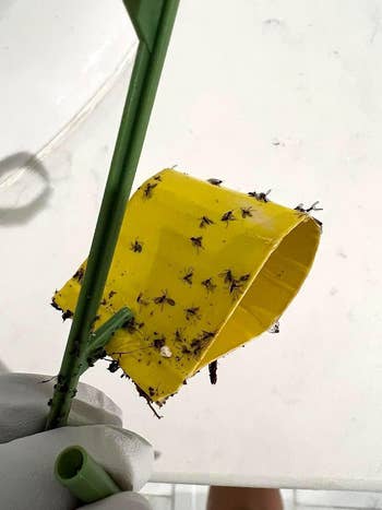 Promising review: "Just placed another order for more. I was given a plant that has brought in lots of gnats. I didn’t realize how many there were ’til I got this. They are doing a great job of catching/killing these annoying bugs. I was even able to put the sticky side in on the lower clip so that it wouldn’t stick to the leaves of the plant and rip them. Will definitely continue to get these when needed. Hopefully, they will get rid of all of them soon." —Nicole Pisa