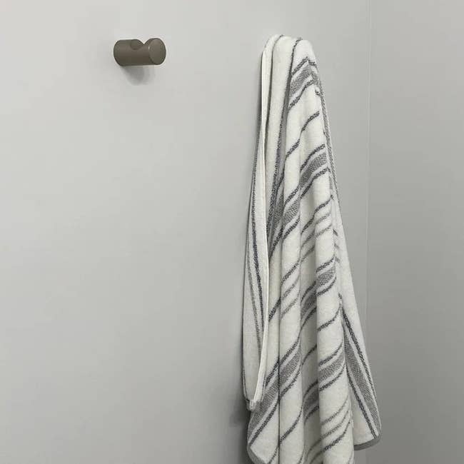 "The quality is great, very sturdy. We were concerned that it would only work for robes, but our towels with or without a sewn-in loop hang there just fine." —Natasha