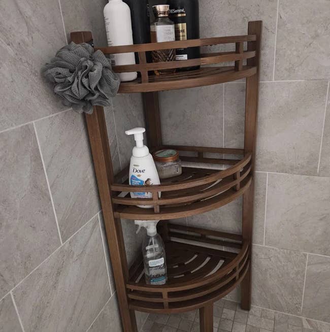 Promising reviews: "This is a game changer. I installed a corner shower, and it had only two shelves. It is nice-looking." —Anonymous