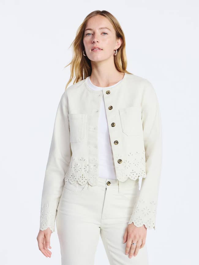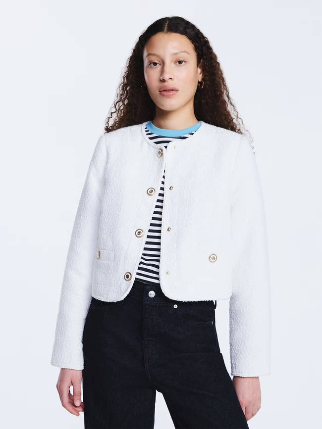 We hope you love our recommendations! While every product is independently chosen by our editors, BuzzFeed and our publishing partners may collect a share of sales or other compensation from the links on this page. You can read more about how our affiliate partnerships work in our Editorial Standards & Ethics Guide. Because it's the jacket that makes the outfit. Unless otherwise specified, all sizes in this post are listed in women's. Promising review: "Quality at a great price. Good, mid-weight denim. Cute as can be! Had to return bc it was cropped. My bad for not noticing this in the description. Return with receipt NO problem. Recommend for those liking cropped." —Carolyn Price: $39.98 (available in sizes XS–XL and two colors) Promising review: "Super cute! True to size, 5‘3“, 126 pounds. You can't beat the quality for this price. Very cute." —Sandy Price: $22.50 (available in sizes XXS–XXL) Price: $34 (available in sizes XS–4X and two colors) Promising review: "This jacket is so cute! It's such a soft, light blue denim looking jacket and lined! Medium weight and cozy but not hot. Easy to wear into Spring and even in summer evenings. I'm 5'9" and it's just below my waist so not overly cropped, just short. Love the gold buttons. I did get my regular size, and it fit great." —TRACY Price: $14.83+ (available in sizes XS–XXXL and four colors) Promising review: "Love this jacket! I got it in fleur with the matching shorts, and it is bright, exactly as pictured online! I did size down (I'm a 4–6, size small in tops), and I got an XS in this jacket. I'm so happy I did. It's still oversize, but perfectly oversize where I can scrunch the bottom and style it cute when zipped, or leave it unzipped at its full length." —DFH Price: $28 (available in sizes XS–XXXL and two colors) Promising review: "This jacket looks exactly like the picture. Oversize and so comfortable! I sized down a size so it wasn't too oversize and it fits perfectly!" —Jessie Price: $19+ (available in sizes XS–XXXL and four colors) Promising review: "I LOVE this blazer! I normally hate how stiff blazers feel and this one wasn't stiff. It looks way more expensive in person that it is. It is fully lined, and the details are very expensive-looking. This is the perfect slightly off-white color I needed in my soft summer wardrobe. I would buy more if they made it in a light periwinkle blue and a soft pink color or a beautiful shade of lilac." —Megan Price: $29.98 (available in sizes XL–XXXL and two colors) Price: $30 (available in sizes XS–XXXL and two colors) Promising review: "Excellent quality denim jacket. It's super cute and hits at the perfect place. I'm really picky about quality, and I've been on the hunt for a darker-wash denim jacket, and this checks all my boxes! Perfect for dressing up leggings and a tank top, or for layering over a dress. I'm constantly impressed with Free Assembly." —Rachel Promising review: "This denim jacket is everything I hoped for and more. The fit is absolutely perfect — tailored enough, but still comfortable with just the right amount of room to move. The sleeves hit at the ideal length, the shoulders sit exactly where they should." —Brooklyn Price: $34 (available in sizes XS, M–4X) Promising review: "I wasn't sure about this jacket, thinking it was not long enough. It turned out to be perfectly fine. This is the first jacket EVER that was the right length in the sleeves. Excellent purchase on my part." —Elyse Price: $39.99 (available in sizes 1X–4X and two colors) Promising review: "This is so pretty. The 3X fits just right. This is perfect for me because I do not like a heavy coat and never wear one, and this can be worn in winter, fall, and spring. It will keep you very, very warm. Love it, and it is longer in the back, just another to cover your backside...I have got one in every color, and they are all pretty, and the price is 15 dollars, you can't beat that." —betty Price: $19.98 (available in sizes 1X–4X and three colors) Promising review: "Love this jacket. Terra and Sky are hit-or-miss in terms of size, but this jacket is on point. My favorite jeans jacket, and I already own 3. I bought a 5X for a little more room." —Andrea Price: $38.98 (available in sizes 0X–5X and three colors) Promising review: "Love this jacket with the added little underneath top with the grouping. Great color and very comfy. Perfect for a spring day. I did size up to a large from a medium." —PJ Price: $34 (available in sizes XS–4X and four colors) Price: $28 (available in sizes XS–XL and three colors) Promising review: "Comfy and stylish. It smelled weird when I got it, but it was fine after I washed it. It's a great early spring jacket." —Tiffany Price: $23.96 (originally $38; available in sizes XS–XXL) Promising review: "Stunning! This Nubby Jacket is gorgeous, and I wished so hard for it to look good on me. I have a large, barrel chest, and I could not get it snapped across the chest. Going up a size will probably make it really big on me. But for you, get it!!! You feel the quality as soon as you get your hands on it: good weight, construction, and oh, those buttons/snap covers!!! They could be jewelry themselves. Hoping they can use this fabric in another design. It goes well with the tweed skirt." —Jenny Price: $42 (available in sizes XS–XXL and two colors) Price: $42.99 (available in sizes S–2XL and three colors) Price: $39.88 (available in sizes XS–XL and two colors) Price: $39.99 (available in sizes S–2XL and two colors) Promising review: "This hoodie is a new favorite! The fabric is thick, soft, and has good stretch and weight. I would say they run a little on the larger end, and you might be able to size down one. Definitely do not size up. I have been loving the Reebok sweats collections lately! This hoodie is a real winner in my book." —christine Price: $19.99+ (originally $25; available in sizes XS–3X and 10 colors) Promis