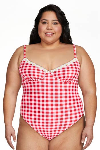 We hope you love our recommendations! While every product is independently chosen by our editors, BuzzFeed and our publishing partners may collect a share of sales or other compensation from the links on this page. You can read more about how our affiliate partnerships work in our Editorial Standards & Ethics Guide. Unless otherwise specified, all sizes in this post are listed in women's. Promising review: "I love all things gingham, and with the price, I immediately ordered it. The details are so cute, from the bright colors to the daisies to the cutout on the back. The underwire is pretty comfortable too, and the straps are adjustable. It's advertised as high cut cheeky, and while it is high cut, it's not over the top, and honestly, the perfect amount of cheeky that I would still be comfortable wearing it around family/kids/etc." —rachel Price: $22.98 (available in sizes XXS–XXL and four colors) Promising review: "Such a cute top! Looks high-end." —Bayley Price: $13.98 (available in sizes XXS–XXL and six patterns) Promising review: "Wow, I hope they offer this suit again in more colors! The straps are adjustable, and so is the side tie. The rounded square neckline is so nice. The cut and coverage of the bikini line area is perfect. Medium compression. Love it!!" —Cobalt Crush Price: $26.98 (available in sizes XS–3X and four colors) Price: $19.39+ (originally $37.99; available in sizes XS–3XL and three colors and patterns) Price: $16.98 (available in sizes XXS–XXL and seven colors) Promising review: "Finally, a bathing suit for those of us who are slightly heavier than we'd like to be. Tummy control and a nice overall design. Decent support in the boob area as well. I've been looking for years for this suit. Very happy." —Lori Price: $19.69 (available in sizes S–XXXL and four colors and patterns) Promising review: "This bathing suit is so comfortable, love the back, and no painful wires in the bra area. I liked it so much I got another one in a different color!" —Susan Price: $16.98 (available in sizes XXS–XXL and four colors) Promising review: "The suit is beautiful for us curvy girls! I am between a 36D and DD and the cups were a little big on the sides. I placed a padded insert in them and they fit great." —Victoria It's finished with a notch detail at the neckline. Promising review: "Gorgeous, totally worth the money swimsuit! I'm big, and it covers all my rolls and apron belly and everything! I don't even do reviews, but I had to come put the big girls onto this one." —Bailey Price: $28.98 (available in sizes XS–3X and two colors) Price: $13.98 (originally $19.98; available in sizes XXS–XXL and three colors and patterns) Promising review: "Easy to get into. A little hard to peel off. Love the removable bra cups as I have one breast larger than the other due to cancer. And it covered my port, which is nice." —Chris Price: $28.98 (available in sizes XS–3X and four colors and patterns) Promising review: "Since breaking my rule of no bathing suits at 71 years old, I discovered this line, and it has changed my life. Price is unbeatable, as is the quality, wearability, colors, and fabric. When in the water, when the skirt part of the top floats up in the water, so your stomach skin isn't exposed, which is always a plus." —Janet Price: $20.89+ (originally $24.99; available in sizes S–XXXL and six colors and patterns) Promising reviews: "Honestly, I didn't think this swimsuit would've fit the way it did. OMG! 😲 Perfect fit. I highly recommend. 👌 I will be wearing it on vacation. The colors are what you get that's in the picture, material is soft." —Sharon "This swimsuit fits well and looks great. It is very comfortable and doesn't ride up. Very good quality and value for the money. I recommend this suit." —Cindy Price: $17.99+ (originally $29.99; available in sizes S–3XL and seven colors) Price: $11.98 (available in sizes XXS–XXL and four colors) Promising review: "Beautiful and mom-approved bathing suit. Fine material." —Zoila Price: $28.98 (available in sizes XS–3X and five colors) Promising review: "This suit is really cute. It's chic while also being kind of sporty because of the cut. I'll be able to play beach volleyball, chase after the kids, or just lounge around and feel hot doing all of it!" —anonymous Price: $19.96+ (originally $32.99; available in sizes S–2XL and 11 colors and patterns) Price: $28.99+ (originally $45.99; available in sizes 0X–5X and four colors) Promising review: "Good support with the underwire has removable pads. Cute and sexy." —Walmart customer Price: $16.98 (available in sizes XXS–XXL and four colors and patterns) Price: $22.98 (available in sizes XS–3X and two colors) Promising review: "This suit fits so well! It fits like a high-end swimsuit. The top holds me in and up. The print is fun! I can't wait to wear this suit!" —Julie Price: $22.98 (available in sizes XS–3X and three colors) Price: $22.98 (available in sizes XS–3X and five colors) Promising review: "Love this suit. Wore it on a cruise and got lots of compliments. Decided to get it in another print and color. Might get another one!!! Great price, and great fit." —Pamela Price: $29.99+ (originally $38.99; available in sizes M–2XL and six colors and patterns) Promising review: "Why have I never seen a swim romper like this before — it's brilliant! I have a couple of 'vacationing with my husband' and 'girls weekend' swimsuits, but I need a 'mom of 3, and I want to feel comfortable while playing at the pool' swimsuit. It's perfect!! And no cover-up necessary. I can slip on my sandals and go." —Laura Price: $26.98 (available in sizes XS–3X and four colors) Price: $28.98 (available in sizes XS–3X) Promising review: "Super cute and chic, exactly like the photos." —Prissa Price: $19.98 (available in sizes XXS–XXL and three colors and patterns) Price: $18.98 (available in sizes XS–3X and two colors) Promising revi