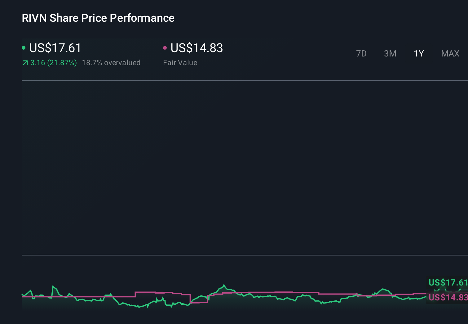 Explore 6 other fair value estimates on Rivian Automotive - why the stock might be worth just $14.68!