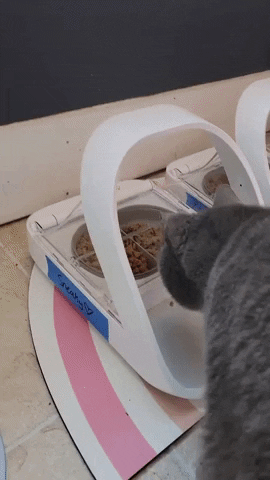 "The setup was ridiculously fast, the open-close function works beautifully, and my cats learned how to use these almost immediately. Finally, Sneaky could *only* eat what was in his feeder, which allowed me to control his calorie intake and see exactly how much food he's eating daily — and I could be sure that my other cat was getting *enough* food, too. This is also a fantastic solution if you have cats on different diets due to health reasons, and if one of them starts eating way less for some reason, you'll know immediately and be able to report that to your vet. I also love that the feeder comes with both split and regular bowls — I used the split bowls to serve my cats both dry food and wet food at once!