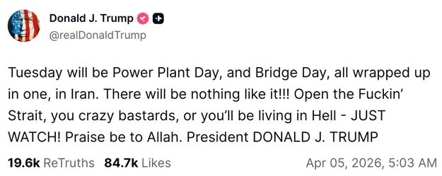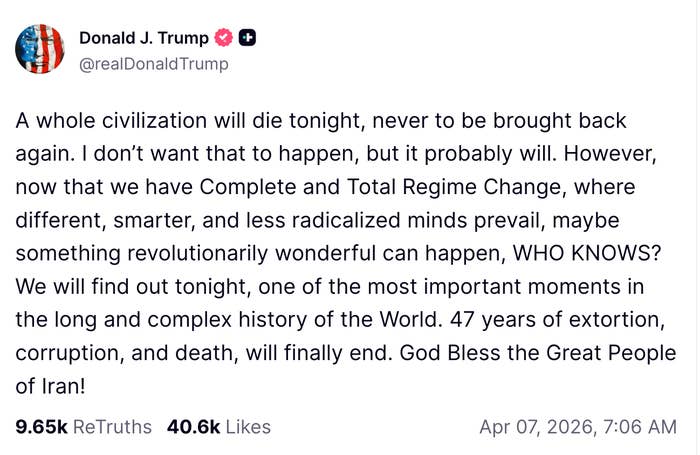 People Are Calling For Trump's Removal After He Posted "A Whole Civilization Will Die Tonight"
