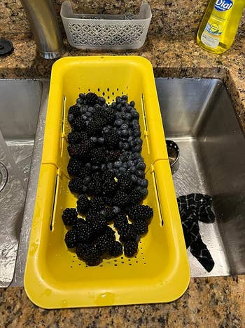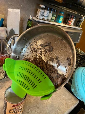 We hope you love our recommendations! While every product is independently chosen by our editors, BuzzFeed and our publishing partners may collect a share of sales or other compensation from the links on this page. You can read more about how our affiliate partnerships work in our Editorial Standards & Ethics Guide. This colander can expand from 14.5 to 19.5 inches. It's top-rack dishwasher safe as well! BuzzFeed editor Jenae Sitzes has and loves this product, "I have this colander in the pink color and absolutely love it! I don't leave it out on my sink permanently, but I've hung it right next to my sink using small Command hooks so I can quickly grab it and place it on my sink whenever I need to clean produce or drain pasta. I love being able to leave ingredients on it to drain while I work on other steps of a recipe, and it also leaves enough room in the sink for me to place dirty dishes or wash a pan without the dirty water going onto my clean ingredients. Highly recommend, especially for small kitchens!" Promising review: "I’m obsessed with this. I leave it in my sink always. It makes washing fruits or draining pasta so much easier and has such a simple cleanup. It also adds a nice pop of color to my kitchen. I highly recommend it." —Alyssa Get it from Amazon for $18.99 (available in six colors and in two-packs). It also has a spout so you can control how much liquid you pour out, and its compact design won't take up much storage space! Promising review: "Typically, I am not a fan of one-trick kitchen utensils. But this thing is a game-changer!! Regular strainers are clunky and take up too much space, plus pouring scalding hot liquid into them with heavy food splashing around is dangerous and messy. This eliminates that. Seriously, how have I lived my life without this? I remember making a very large and heavy batch of soup stock, and it was difficult enough to just lift the pot and pour, let alone safely into a strainer that could easily move or tip over if I poured too quickly…but this baby made the transfer so easy it’s almost laughable that anyone would use a normal strainer these days! It’s sturdy, it stays in place, it's small, lightweight, won’t rust, easy to clean, doesn’t burn your hands after being submersed in liquid fire. What else could you ask for in a strainer? Enough already, just buy it!" —Kellu Get it from Amazon for $12.53+ (available in five colors). Promising reviews: "I love this product! I use it every day to slice or cut vegetables or fruit and then rinse them in the colander. Versatile and fits over my sink perfectly." —Jeff Wedgwood Get it from Amazon for $24.99+ (available in five colors). Check out a TikTok of the Ninja Crispi Air Fryer System in action. Each air fryer comes with the "PowerPod," two containers (a 4-quart and a 6-quart), and lids. The PowerPod has auto-shutoff and four modes: Max Crisp, Bake, Air Fry, and Recrisp. The "feet" are heat-safe, so you can prop it on any surface, no problem. Promising review: "I got my Ninja Crisper today and reheated some stuffed bread with feta cheese and spinach, and it did a wonderful job. It was like it just came out of the oven the first time. Nice and crispy outside, but the inside heated just right. I love that the bottom glass can be covered with the lid it comes with. They come with a metal plate you can put in the glass bottom part, and it actually fits into the lid, so it doesn't get lost. The glass makes a difference in the taste, too. It is a great product and well worth it." —Jennifer Get it from Amazon for $179.99+ (available in seven colors). Promising review: "We purchased this oven after our 26-inch drop-in oven finally saw its last day. It is a temporary oven till we remodel the kitchen. This oven does it all. I have cooked amazing dinners, cakes, cookies, and pies. the dual-zone sync option is awesome. Very happy customer here!!!" —Steve Psst, as you can see above, this set also comes with a crumb catcher where your stovetop meets your countertop! Promising review: "I've been using the foil ones and while they do the job, they're not so nice to look at. I like that this is black so it matches the original color of the appliances, but more importantly I like that this has a larger surface area to catch the drips that the foil ones never could before. They're also trim to fit, so they get right up into each burner without leaving gaps where drips can burn where it's hardest to clean. Overall recommended." —Michael Get an 8-pack from Amazon for $10.99+ (available in four colors and three sizes). Promising review: "Thick good quality material, has weight to it so it won’t slide around, I love that it has a slant to it so the water slides off AND it slips over the edge of the sink so the water doesn’t collect underneath." —shaw Get it from Amazon for $17.79+ (available in two sizes and five colors). Ivy Cottage Art Gifts is a small business that sells stunning handpainted kitchen items. Promising review: "These salt and pepper shakers are a great size for someone who’s always in the kitchen! The paint job is as described and even more beautiful in person." —Kashlamb12 Get them from Ivy Cottage Art Gifts on Etsy for $39.99. Promising review: "Excellent quality and fits a block of butter quite well. I particularly like that it has a lip the top fits over that keeps the butter inside so it isn't all over the edges of the cover. It washes up beautifully in the dishwasher or by hand. I liked it so much I sent one as a gift. Would definitely buy again." —Sunday Reader Get it from Amazon for $22.99+ (available in seven styles). Promising review: "These scissors do it all! From cutting poultry to removing gristle from the bottom of a tri-tip roast, and any number of other kitchen items. I'm left-handed, and the grip is comfortable. They're very easy to clean, and the plastic sheath that comes with them is a plus, preventing me from gouging myself when looking for other