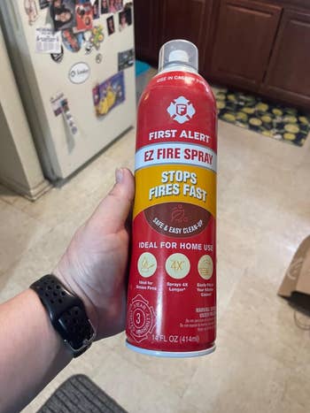 Promising review: "Of course you never want to use something like this but I knew that we needed one in our new condo just in case. I was right! I was toasting taco shells in our large toaster and looked away for a moment. Smoke billowed first and then it caught fire fast. My husband grabbed the device, aimed and sprayed for about five seconds. He stopped and I barked for him to do it again because it caught one more time. There’s no way I would have been able to toss a blanket up there and a real extinguisher would have left the biggest mess. This was easy to clean up!" —Mamercs6