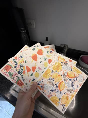Promising review: "I love these! I have used these for years instead of a sponge or a dishrag. They hold up great, mop up crumbs and spills quickly, can be popped in the dishwasher to clean, and bring a bit of color to the sink area in my otherwise neutral kitchen." —Wynnefred