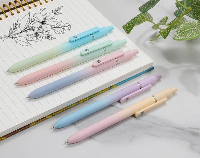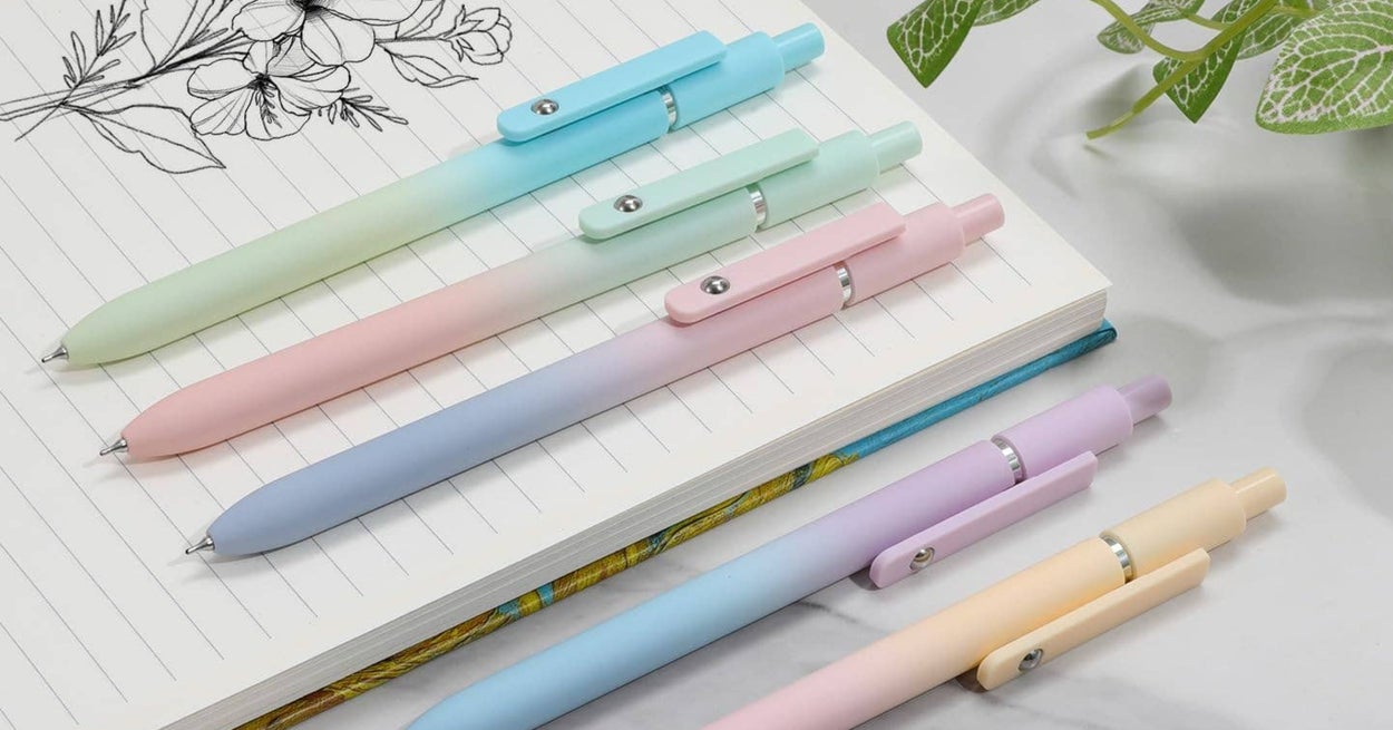 "I love the matte texture of these pens. The fine tip also makes it easier to write smaller since a lot of gel pens write very thickly. Also the little ball barring in the clip is very entertaining to roll with your thumb. These would be great for people who want to have a fidget on hand without making it obvious." —Melody