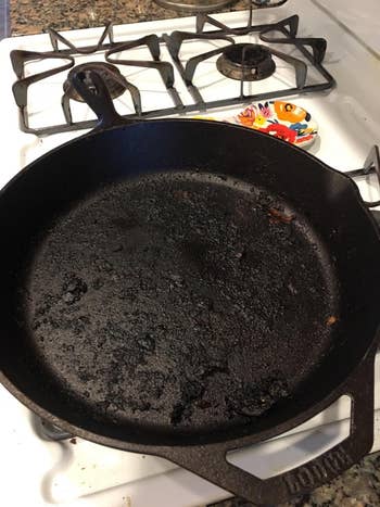 Promising review: "Necessary tool to clean your cast iron pots and pans. Perfectly contoured to the rounded corners used by Lodge in their pans so you'll get any food stuck to your pan off easily. The plastic is sturdy and malleable but not so much that it will deform. Been using them for a couple months now, and I haven't had them break. And since I still can't get a properly seasoned coating on my pans, I have a lot of food that sticks (my fault), but these scrapers get pretty much everything off easily." —JGtz