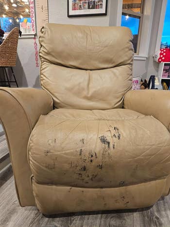 Promising review: "My 15-year-old leather sectional hadn't been cleaned or conditioned in three to four years because I couldn't find anything that worked well without causing it to look blotchy. The color was also fading, and I thought it was a goner. After some elbow grease, the sectional looks great! It's now back to its original color without being blotchy. More importantly, the suppleness has returned. I can actually say that it looks as good as the day we bought it." —jellybean55