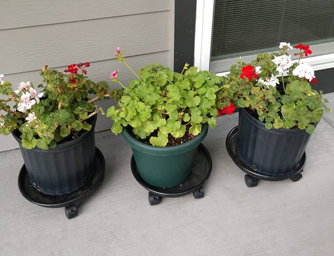Promising review: "These are great for plants! I have three five-gallon geranium plants that don't like to get wet. For the last couple of years, I was lugging them around back and forth on the patio. What a relief for my back that I don't have to do that anymore. The trays are sturdy and deep enough that water doesn't come out all over the ground, either. I like the wheel locking feature in case I want them to stay in place, and the maneuverability of them is great." —Cheryl
