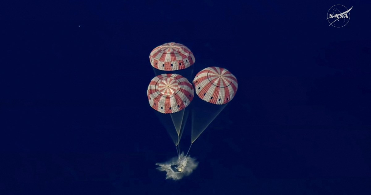 Contact was restored as parachutes deployed, slowing Orion’s descent before it gently hit the ocean.