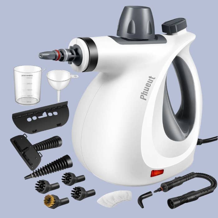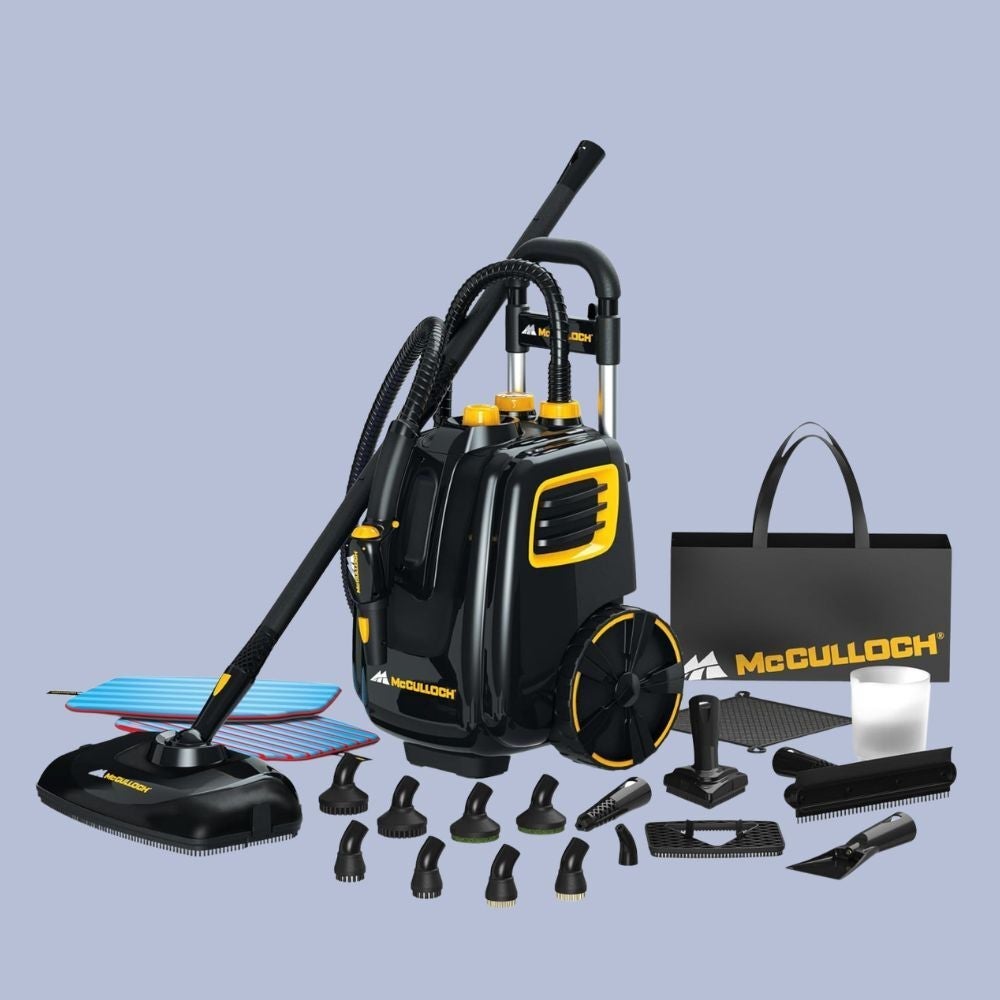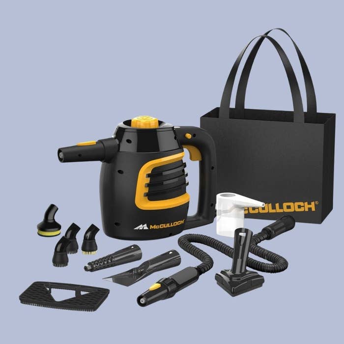Based on her preferences, we chose to include the McCulloch handheld steamer, which currently has 4.3 out of 5 stars on Amazon, across over 44,000 ratings. Among the 11 different attachments, there's a jet nozzle with a scraper tip for concentrated steam power, as well as a triangle brush for getting into corners and various detail brushes for getting into grout and along moldings, plus a 34-inch extension hose for reaching higher up areas. With a six-ounce direct-fill tank that promises to heat up to 200 degrees in under three minutes, the McCulloch promises up to 10 minutes of uninterrupted steam cleaning before you need to refill.