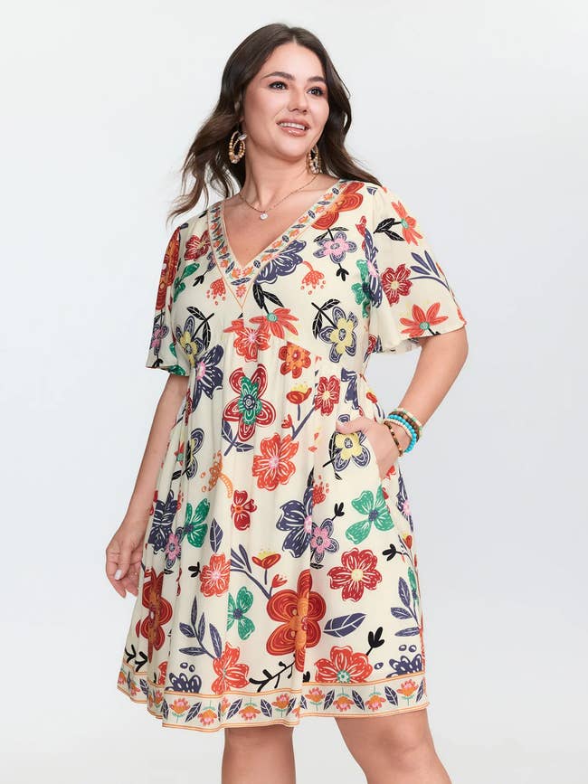 Promising review: "This is my absolute favorite dress from BloomChic. I have it in three different colors and I reach for it all the time. The material is lightweight and has the most beautiful swing to it and I love that you can cinch the top to make it more of a sweetheart neckline. You can dress it up or down depending on the occasion and I am always happy to have a dress with pockets. One in every color, please!!" —Mitchell