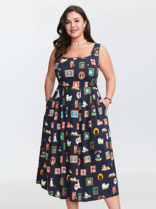 Promising review: "Absolutely loved this dress! It's got cute dog prints 🐕 so what's not to love 💕 This dress is super comfy and too cute!!!" —S**e