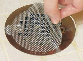 Promising review: "For anyone with long hair, drainage clogging in the shower is a pain. So THANKS to whoever thought of such a simple but clever solution. They stick perfectly and the glue lasts like three weeks. It literally does not let a hair pass, and it's just so easy to place and remove. I wish I had known about this product before! A must-buy." —MER