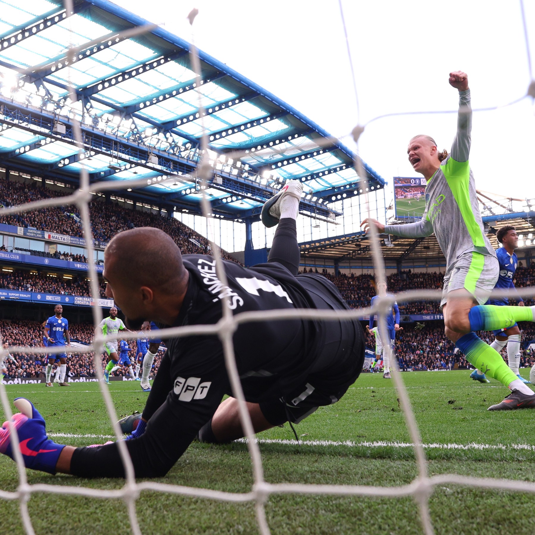 City score three goals in 17 second-half minutes to crush Chelsea at Stamford Bridge and move within six points of football league leaders Arsenal. Save Share Manchester City ignited the Premier League title race with a second-half blitz that sealed a 3-0 win against Chelsea as they closed the gap on leaders Arsenal. Pep Guardiola’s side produced a devastating spell immediately after half-time on Sunday, with Nico O’Reilly and Marc Guehi scoring in the space of six minutes at Stamford Bridge. Jeremy Doku wrapped up a statement victory to ensure City took advantage of Arsenal’s shock 2-1 home defeat against Bournemouth on Saturday. Second-placed City are now only six points behind Arsenal with a game in hand, setting up a seismic showdown against the Gunners at the Etihad Stadium on April 19. Having beaten Arsenal in the League Cup final and thrashed Liverpool in the FA Cup quarterfinals, City are hitting form at just the right time. Their bid for a seventh English football title under Guardiola had appeared to be fading after successive draws with strugglers West Ham and Nottingham Forest in their previous two league matches. A disjointed first half against Chelsea suggested City might waste a golden opportunity to pile pressure on Arsenal. But Guardiola’s half-time team talk had the desired effect, and City can now target next weekend’s do-or-die visit from Mikel Arteta’s spluttering team. If City win that blockbuster clash, they will be within three points of Arsenal, who blew substantial leads in the 2023 and 2024 title races, and will have a game in hand, possibly allowing Guardiola’s men to pip them to the trophy. After winning their first four league matches following Liam Rosenior’s arrival from Strasbourg to replace Enzo Maresca, Chelsea have won just one of their last seven football matches, losing three in a row to leave the Blues boss facing some difficult questions. Chelsea, who have not beaten City since the 2021 Champions League final, were again without Enzo Fernandez after Rosenior’s controversial decision to drop the Argentinian midfielder for hinting he might leave in the summer. Sixth-placed Chelsea looked subdued without Fernandez, and they trail four points behind Liverpool in the race to qualify for the Champions League via a top-five finish. Lacking energy and cohesion in a sloppy start, City were fortunate not to fall behind when Marc Cucurella’s clinical finish was disallowed for a tight offside. City also let Pedro Neto in far too easily for a stinging strike that forced Gianluigi Donnarumma to save at his near post. It took City 35 minutes to mount an incisive raid as Bernardo Silva stretched to meet O’Reilly’s cross, but Robert Sanchez made a fine save from the midfielder’s close-range effort. But City stepped up after the interval and O’Reilly made the breakthrough in the 51st minute. Rayan Cherki whipped an in-swinging cross towards O’Reilly, and the City left-back reprised his League Cup final heroics with another clinical header from close range. Six minutes later, Cherki again showed the creative genius that has won over Guardiola despite some impetuous moments in his first season in Manchester. The France playmaker glided past a gaggle of Chelsea players on the edge of the area before threading a sublime pass to Guehi, who looked more like a forward than a centre-back as he smashed a perfect strike into the far corner from 12 yards. City benefitted from wretched Chelsea defending for their third goal in the 68th minute. Sanchez rolled the ball to Moises Caicedo even though the Chelsea midfielder was surrounded by three City players and Doku pounced, racing into the area to drill home as Guardiola celebrated a priceless result. Doku praised City’s “exceptional” win after the game. “I watched the Arsenal game, and when I saw them lose [at Bournemouth on Saturday], I saw that the Premier League is really unpredictable,” he told Sky Sports. “We were also focused on our own game. Winning here [at Stamford Bridge] is not a given, so that we did it today is exceptional.” Elsewhere on Sunday, Tottenham’s survival fight took another blow after a 1-0 loss to Sunderland left them rooted in the relegation zone. In coach Roberto De Zerbi’s first game in charge, Spurs fell to a 16th league loss of the season. Their 14-game winless run in the league dates back to January 1. Nordi Mukiele’s deflected shot sealed the game at the Stadium of Light and plunged Tottenham’s campaign deeper into crisis. Tottenham are two points adrift of safety with six games to go. Their plight was not helped by relegation-fighting Nottingham Forest drawing 1-1 with Aston Villa. Meanwhile, Crystal Palace came back from 1-0 down to beat Newcastle 2-1 at Selhurst Park.
