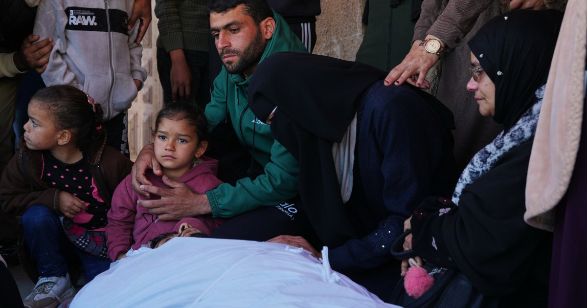 Medics at Al-Aqsa Hospital said on Monday the attack targeted a group of men gathered outside a school in Deir el-Balah in central Gaza. The bodies of those killed lay on the ground in white shrouds outside the hospital’s morgue as relatives and friends arrived to bid them farewell. Some kissed the victims’ foreheads before holding special prayers.