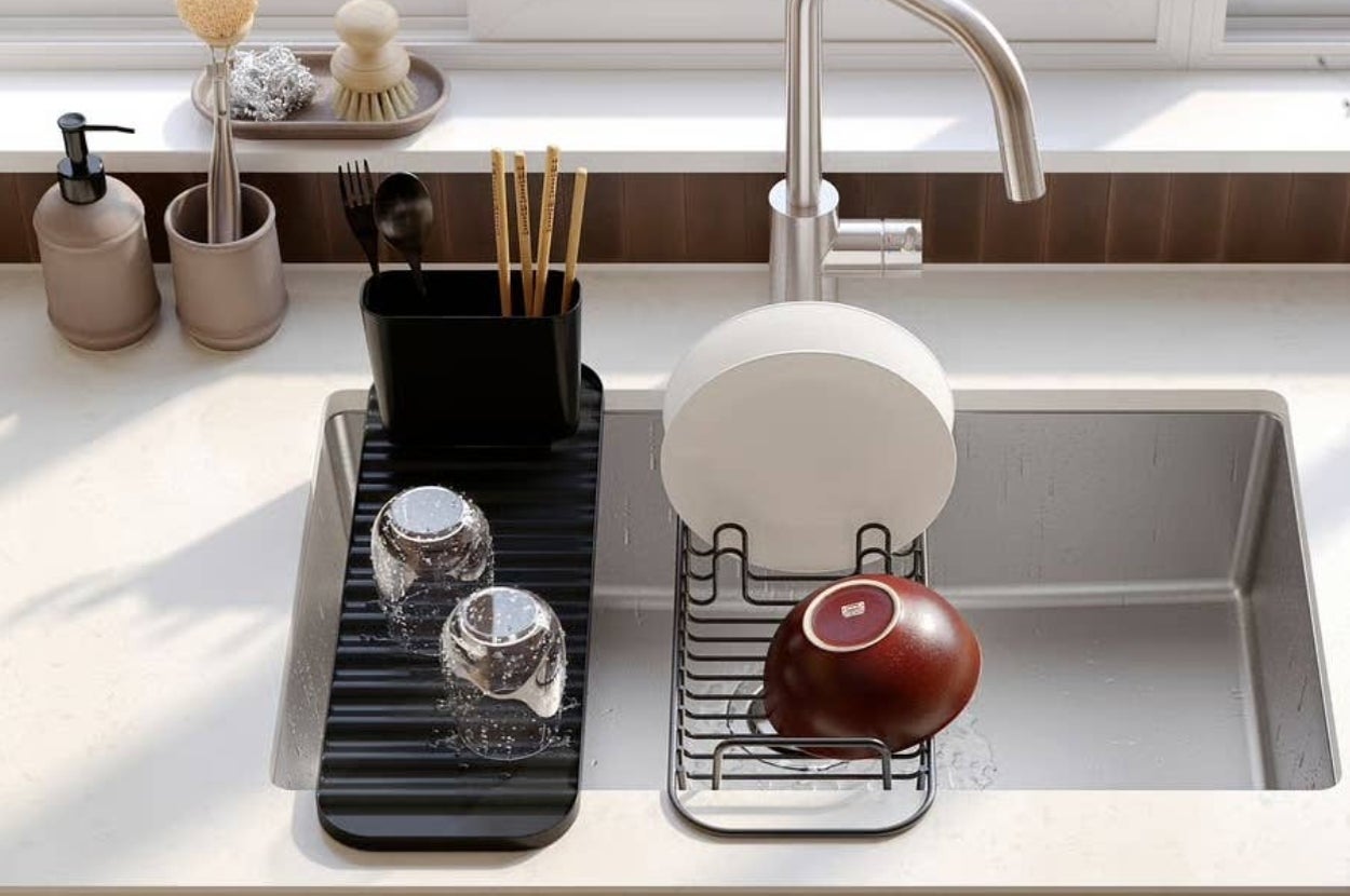 We hope you love our recommendations! While every product is independently chosen by our editors, BuzzFeed and our publishing partners may collect a share of sales or other compensation from the links on this page. You can read more about how our affiliate partnerships work in our Editorial Standards & Ethics Guide. Even if you have a mere hint of counterspace. Take it from someone who, essentially, lives with a kitchenette. You wanna talk about open floor plan? My living room and kitchen *are* the same room in my New York City apartment. So you could say that I know my way around a small kitchen! As a shopping editor, I've tried countless products and tricks because 1) product research and 2) I cook a lot at home! I'm here to help fellow small-kitchen folk with clever finds like a paper towel holder you can mount on the bottom of a kitchen cabinet and fill up some of that dead space in front of your backsplash without hogging counterspace. (Mine is in that setup and I'm thankful for it every day!) Or perhaps you've been on the prowl for a kitchen trash can that'll fit inside a cabinet. I've found that for you, too, AND also own it! Read on to make the most of your small kitchen, even if that just entails plating your takeout dinner and conveniently reaching for a paper towel. Check out Bella's matching line of compact, affordable kitchen appliances! Promising review: "The narrow width of this toaster helps free up real estate on my small countertop, plus it accommodates two slices of toast, English muffins or bagels as well as a regular width toaster. It comes in a beautiful teal color which I love. And the three toast levels ensure you don’t burn food and the quality of the toast is just right — from light to brown. I highly recommend it!" —Joyce Hill Get it from Amazon for $21.99 (available in five styles). Promising review: "Absolutely the best coffee maker I've owned. Been through quite a few of that other pod brewing brand and this one is so much more reliable and makes a better cup of coffee with a very flexible cup size and the option to use pods or grounds. Best part is the small footprint in a very small kitchen with limited countertop space." —Cyndi Get it from Amazon for $99.95+ (available in six colors). Elypro is a small business in New York City making clever organization products for the home. Promising review: "I use these to organize my coffee mugs and my glasses in smaller cabinets. They not only look nicer, they save space without tilting when you try to stack mugs without support. I also use these to stack ramekins and that is also better now. These are adjustable to fit different sizes. I highly recommend these organizers!" —Amazon Customer Get a set of six (to organize 12 mugs) from Amazon for $24.99 (available in three colors). Food Huggers is a woman-owned small biz that focuses on everyday sustainable solutions to cut down on single-use plastic. Promising review (it's long but worth it!): "I don't write many product reviews but I have to say how impressed I am with this product. I first saw it on 'Innovation Nation' and was curious. I decided to order a couple of sets and these really work. Here are two experiences: 1) I cooked a dish requiring half an onion two days before going on vacation; I nearly threw out the remainder of the onion fully expecting that it would go bad before I got back. I decided it would be a great test for the food huggers. I put the appropriate-sized food hugger on the onion and simply sat it on the shelf in my fridge. Two days later I left town for 10 days. Another day went by before I checked the fridge to see what I had to get at the grocery store and still didn't look at the onion, what was noticeable at that point was that the entire refrigerator did NOT smell like onion. A day or so after that, I went to cook a meal requiring onion and fully expected that the onion I left behind would not be usable. Not only was it not rotten or moldy, but it still smelled fresh and was still juicy — not dried out or withered, perfectly fine to use. 2.) I skeptically used a food hugger on half a heirloom tomato planning to use the other half a day or two later. Life got busy, plans changed and a full week later, the tomato was still sitting there. The tomato was fine and only suffered a little from being in too cold of a section of my fridge. Very impressive. The only thing that requires some adjustment is cutting your vegetables in such a way that a circular cross-section is there for the food hugger to fit onto. I consider this to be only a minor inconvenience." —holiday shopper Get them from Amazon for $16.99 (available in five styles). (I have a similar one on my kitchen cabinets and love it.) Note that this ships with a $35+ order. Promising review: "Great for anywhere you have a shelf. Works great for hanging my wineglasses." —Monika Promising review: "Simple, modern, practical. Easy to attach anywhere, super stable." —Kathrin The 20-piece set includes a 10-inch saute pan, 10-inch frying pan, 9-inch frying pan, 3-quart saucepan, 2-quart saucepan, 7-inch/8-inch/10-inch glass lids with silicone rims, 2 detachable handles, 3 utensils, 3 triverts, and 4 pan protectors. Promising review: "Worth it! I love this set. This is my second set, I love to cook and have a big family so wanted to add additional pans. This brand is worth the money and cooks just as good as the more expensive ones." —Toni L Tobin Get them from Amazon for $79.99+ (available in two set sizes and three colors). Made from heavy-gauge steel and can store up to 36 cans of various sizes. Promising review: "These units were easy to assemble. They felt sturdy. I love that they are made of metal and not cheap plastic. I'm considering buying two more, and going side by side and stocking up on canned goods!" —Amazon Customer StoveShelf is a small business and these shelves are built to last a lifetime. Promising review: "This is an excellent buy. The shelf helped m