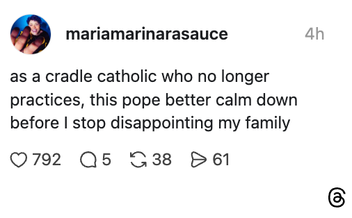 I'm a Costa Rican-American writer covering all the impolite dinner party topics — religion, politics, witches, identity, Da Pope, and the internet.
