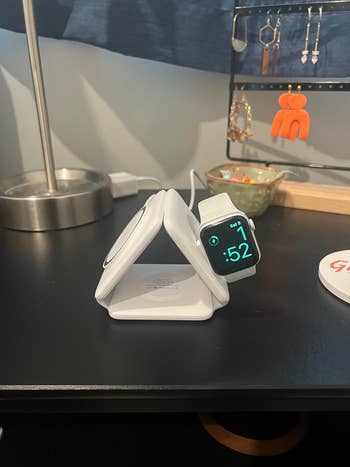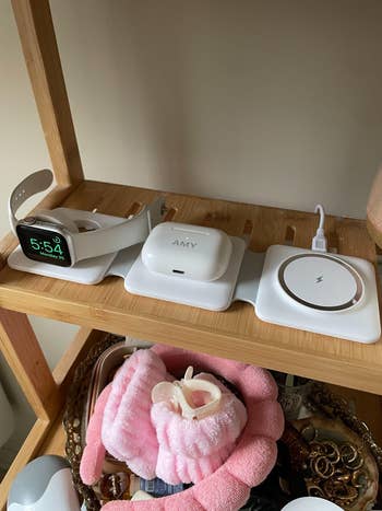 Promising review: "I love this charging station! It's so much easier than having to use the same plug for my phone and AirPods. Now I have a spot for each device. Also, my phone charged through the case, unlike other charging pads I've used. I highly recommend this product!" —Amy Davis