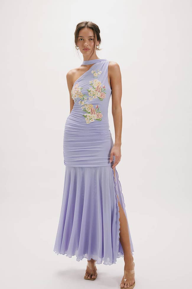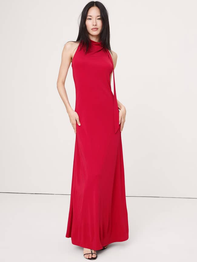 Promising review: "The dress is beautiful, the color is stunning. However, it’s longer than expected. For reference, I’m 5’2 and 140 pounds, and the dress passes my knees. The picture on the model shows above the knees. I should have looked deeper into the length. I’m not mad about it, though. It makes it look more elegant in my opinion. I should have sized down!" —KimberlyBetancourt