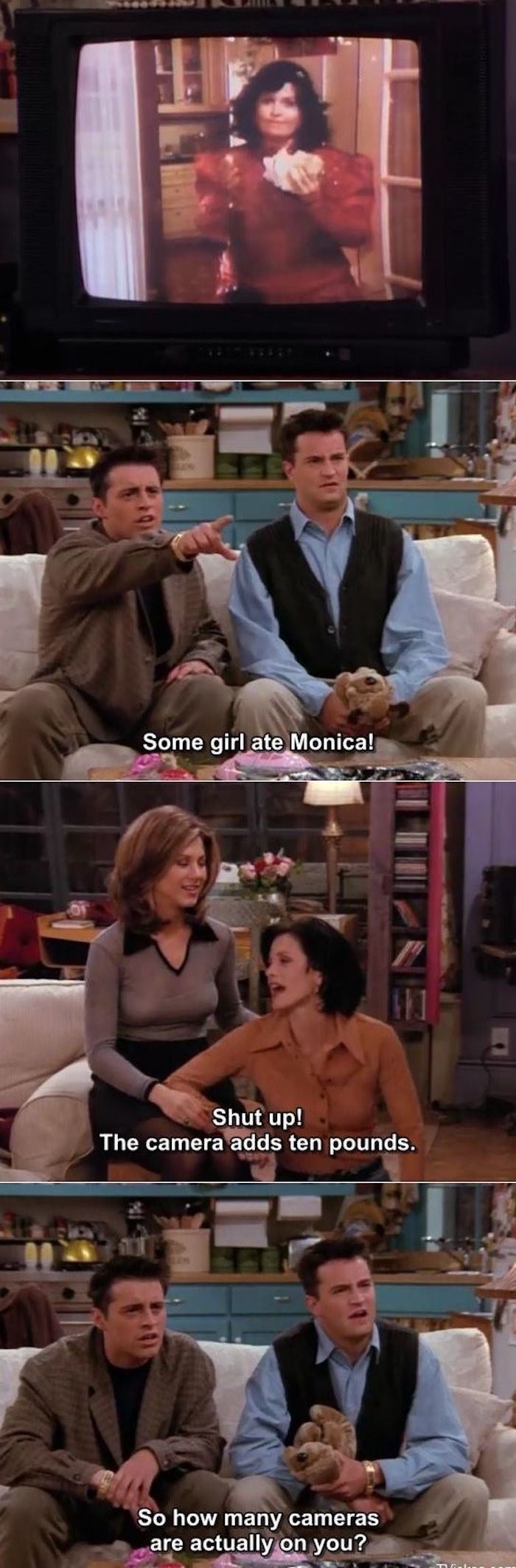 "Two words: 'Fat Monica.' That’s one that feels like it wasn’t just a case of it was 'a different time,' but just your basic 'let’s laugh at fat people' joke. It wasn’t cool then, and it isn’t cool now. Even in the late '90s/early '00s, there were conversations about eating disorders, so portraying someone who was a relatively 'normal' size as a joke was deeply unhealthy."