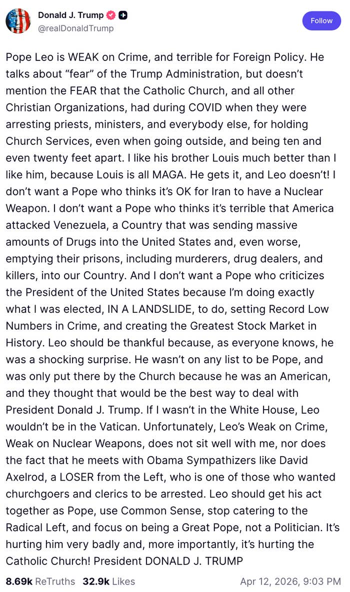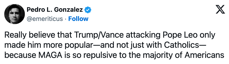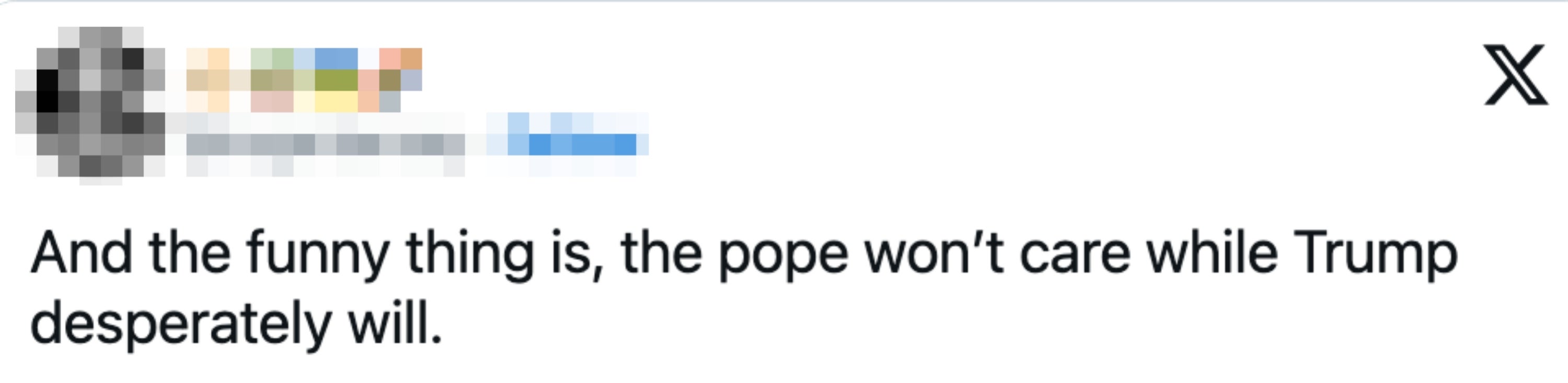 “The funny thing is, the Pope won’t care while Trump desperately will.”