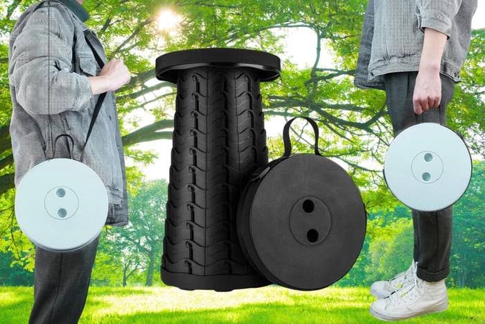 We hope you love our recommendations! While every product is independently chosen by our editors, BuzzFeed and our publishing partners may collect a share of sales or other compensation from the links on this page. You can read more about how our affiliate partnerships work in our Editorial Standards & Ethics Guide. This lightweight, portable stool is the bridge between movement and relaxation. The adjustable strap makes this crafty stool easy to carry, but if you don’t want an additional item added to your load, it’s small enough to fit in a bag and light enough that it won’t weigh you down. Ready for its next adventure, this portable, lightweight stool is the bridge between movement and relaxation. Its fish-scale design allows for an easy retraction from a 2.36-inch disk to a sturdy 17.72-inch seat that holds up to 400 pounds. “I have never loved a product as much as this! Absolutely revolutionary! To think of all the hikes I’ve been on where I wish I had something to sit on or I could take a load off take my backpack off or just enjoy the view and take a breather. Absolutely the best thing yet!” —Chewbacca “We bought these stools specifically for when we have to stand in line for over an hour at free movie screenings, and they’ve been a game-changer! They’re super sturdy, easy to open and close, and lightweight enough to carry without hassle. We’ve gotten a lot of use out of them already. One tip: definitely buy a seat cushion to go with them — after sitting for a while, your butt will thank you. Overall, this is a solid purchase for anyone needing portable seating on the go!” —T Reed “This is an excellent stool for things like waiting in very long lines, or seeing shows at festivals (or other events) with limited or no seating. I have three compressed discs and while I can walk long distances I just can’t stand for more than a short time. I’ve brought this to two multi-day festivals that had lines and venues without seating. It made the experience so much more enjoyable each time.” —Mstove “So far, so great !!! I’m amazed at this thing. It’s great !!! It’s easily carried with you, easily set up and taken down, supports a lot of weight and feels perfectly safe. I think I’d feel a little uneasy with it on uneven ground though. I’ve used it a few times and when I do, I have to show it to people. They’re amazed and say that they are getting one or are going to tell a friend about it that needs one.” —R. Culp “I weigh 325lbs. Was skeptical with the 400lb rating. After using this for > 6 months I give it 5 stars. Solid and sturdy when set up.” —Patrick Lloyd Reviews for this post have been edited for length and/or clarity.