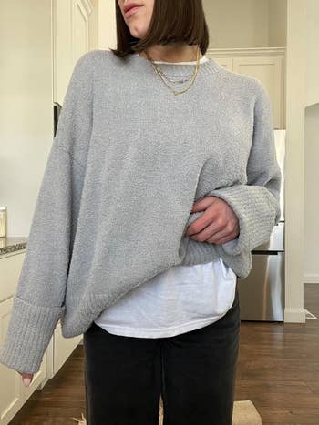 Promising review: "I love everything about this sweater! The fit is great! It feels fitted enough to look stylish, yet loose enough to be comfortable and casual. I feel like I need more of these in other colors." —Harris