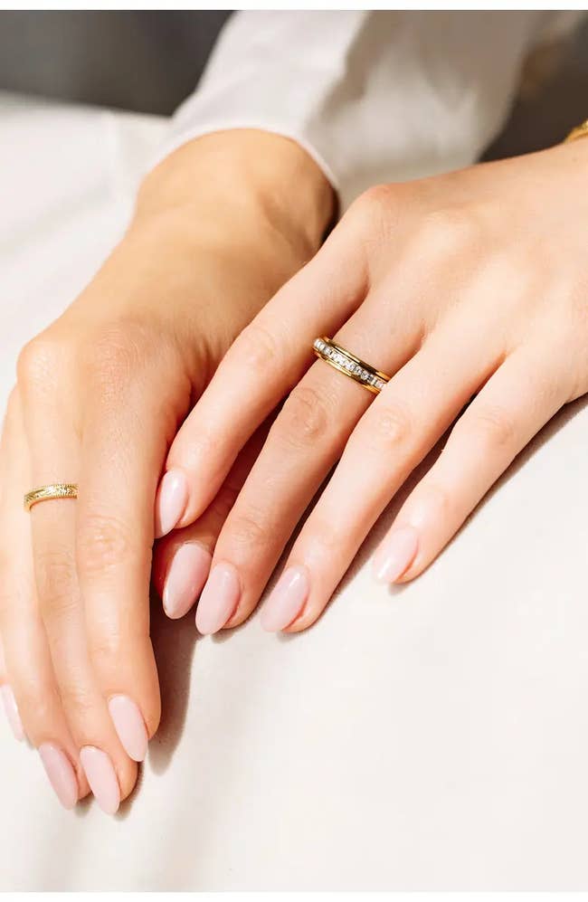 Promising review: "Absolutely love these bracelets! They look way more expensive than they are and have such a beautiful shine. I’ve worn them daily — stacked and on their own — and they elevate every outfit from casual to dressed up. They’re lightweight, comfortable, and haven’t tarnished or irritated my skin at all. The clasp feels secure, and the fit is perfect. I’ve already gotten so many compliments. Great quality for the price — would definitely buy again and highly recommend!" —Hayley