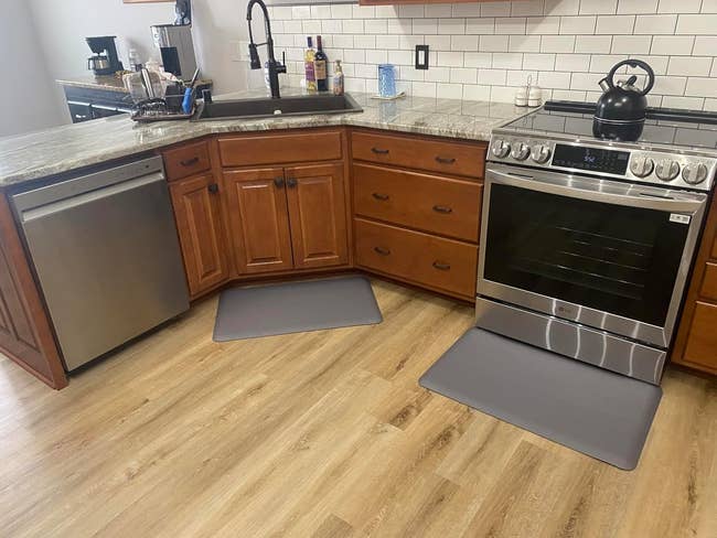 Promising review: "Let me tell you, this little mat has been a game changer for my kitchen routine. I love to cook, but standing on our hard tile floor for an hour or two would just kill my lower back and feet. I kept seeing these anti-fatigue mats and finally decided to try one.