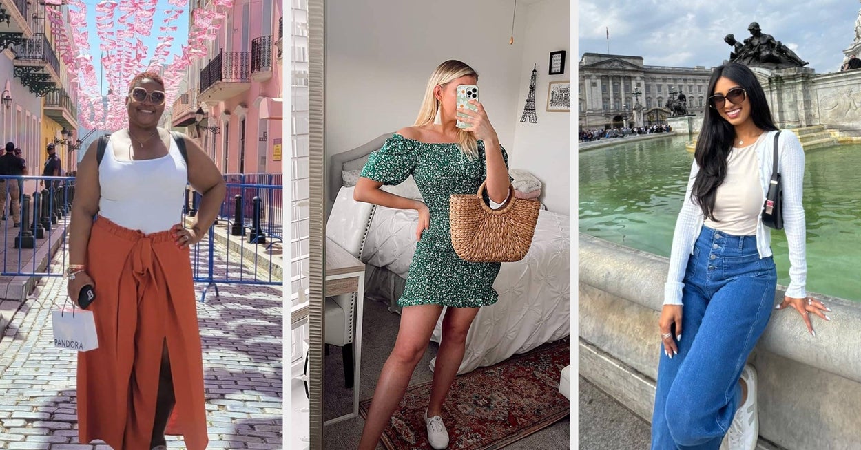 We hope you love our recommendations! While every product is independently chosen by our editors, BuzzFeed and our publishing partners may collect a share of sales or other compensation from the links on this page. You can read more about how our affiliate partnerships work in our Editorial Standards & Ethics Guide. Thirty, flirty, thriving, and not perspiring: This list will keep you looking fab without turning you into a fashionable puddle. Unless otherwise specified, all sizes in this post are listed in women's. Promising review: "Loved this dress and will be ordering more colors! Wore it in Mexico, and it’s very lightweight and has a corset in the back to adjust to your waist." —Tiara Alise Get it from Amazon for $62.99 (available in sizes 0–16 and 23 styles). Promising review: "My family was headed to Laughlin, Nevada...Temps in September reach highs in the mid-90s and lows in the low-80s at night. I wanted to wear something nice but comfortable in the desert of Nevada. This was the perfect outfit; my sisters-in-law loved it...Lose-fitted blouse and perfect-length shorts. I'll be wearing this outfit to Las Vegas next month." —Raina Get it from Amazon for $29.99+ (available in sizes S–XXL and six styles). Promising review: "Perfect travel tank! I ordered these tanks for my trip to Europe to have a cute and functional top to wear with tennis skirts. I love the neckline and how lightweight they are!" —Abby Get it from Amazon for $19.98+ (available in sizes XS–3XL and 40 colors). Honestly, I am SO impressed with Quince! I had *heard* good things, but now I am HOOKED on the quality and the classic styles that don't feel like "fast-fashion" trends that will go out of style the minute the wind changes. And yes, I highly recommend the perfect-for-travel-and-matches-everything shoulder bag, too. Promising review: "A classic shirt. I love it — the material, the fit, the look. It fits true to size and goes with everything." —Ann F. Get it from Quince for $36+ (available in sizes XS–XL in 13 colors/patterns, and in plus sizes 1X–3X in 7 colors/patterns). Promising review: "I hate buying stuff online [and] was scared to buy this, but I did, and it’s PERFECT. It’s a little stretchy, it’s not stiff or uncomfortable. (I got this in black) I love how the buttons are black as well, and the sleeves fit just right, the arms and are not too baggy. It’s also very lightweight. You can dress it up or down. It’s perfect. So perfect I don’t even wanna wear it cause I don’t want to ruin it. Definitely recommend. I will be buying another." —Jayy Get it from Amazon for $62.65+ (available in XS–4X and five colors). Promising review: "This is the only pair of shoes I packed with me on a two-week trip to Paris. They held up pretty well with my 15,000 steps a day on cobblestones. Not the comfiest shoes I own, but not uncomfortable either. No logos, super stylish, went with all my outfits. 10/10 would repurchase." —L Get it from Amazon for $22.09+ (available in sizes 5.5–11). Promising reviews: "This dress is perfect; so comfortable and cute. Can wear with sneakers or dress up with heels." —Paige Kim "Very comfortable and cool (great in hot weather), cute enough to dress up for wine tastings, and it has pockets large enough to hold your phone, keys, snacks (shrimp? You do you). A stranger even complimented me on it, so 10/10 all around." —Mira Get it from Amazon for $38.41+ (available in sizes XXS–5X and eight colors). Promising reviews: "These are such a nice lightweight jean that I’ll wear year round...They are the perfect length. They have not shrunk and are of great quality." —Amazon Customer "Wore these to a high-end mall, and someone grabbed me and asked me where I bought them! Super comfy and really great lines! Exactly as pictured, with just the right amount of stretch. Hold up nicely in the wash. My absolute go-to jeans on a Saturday!" —Amazon Customer Get them from Amazon for $38.99 (available in sizes 4–18 and 16 colors). Promising review: "OB-SESSED! Took a chance, glad I did; so different! Fit beautifully, true to size, zero stretch, great length...really unique and definitely not your average jeans! The cutouts make them perfect for hot weather, very easy for dressing up or down." —Margaret T. Get it from Eloquii for $69 (originally $149.95; available in sizes 14–28). Promising review: "Made well. Love the thin linen material. The scalloped hem dresses up the shorts. Very comfortable." —kim Marcoaldi Get it from Amazon for $19.99+ (available in sizes S–XXL and 28 styles). Promising review: "Bought for my honeymoon in Europe! Has built-in bra/running shorts, which makes moving around easy!" —Melissa24 Get it from Abercrombie for $75 (available in sizes XXS–XXL, tall and petite, and nine colors/patterns). Promising reviews: "I wore this dress for my baby shower, and it fit great! It was comfortable and lightweight, so it wasn’t too hot despite the weather being in the '90s. I got several compliments on the dress's look, and I loved how it looked! I love the color combination of the little flowers and the dress's blue. It’s great quality, and I’ll even be able to wear it when I’m not pregnant anymore!" —Hannah Villmer "When I ordered this dress, I wasn’t sure about it, but it is really beautiful. Fits very nicely, shaping your body nicely... It’s very stretchy, which makes it comfortable to wear." —Maria Vanessa Reyes Get it from Amazon for $16.99 (available in sizes S–XXL and five colors). People love these shoes, y'all. Look at this person gushing over theirs in this TikTok vid! Get them from Sabah for $200+ (available in sizes 4.5–11.5 and 16 colors/patterns). Get them from Bloomchic for $32.90 (available in sizes M/10–6X/30). Promising review: "I’m so happy with this long-sleeve mesh shirt! It’s perfect for layering and adds a stylish touch to any outfit. The size fits true to size and isn't too tight. The 