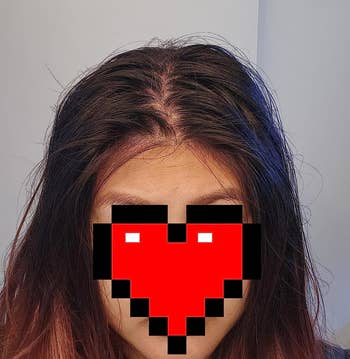 Promising review: "So I was in a car wreck on the third of June 2024, and in the first picture [above], you can see a lot of the markings that are on my face. I just got this concealer in the mail today, and not a moment too soon, because I have an important Zoom meeting. You want to talk about coverage!!!! Now, purple is a really hard color to cover, but this product did it, and I took a picture [above] just to show how well! I am super impressed. Plus, the price point is amazing, and it's just as effective as any high-end product. It went on silky smooth! Thank you, E.l.f. Cosmetics, you saved me!" —Jessica