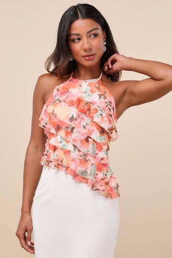 Promising review: "Such a cute top! It's versatile and perfect for both daytime events and evening nights out. It matches the pictures perfectly and is a really nice mix of colors. It literally matches everything in my wardrobe!! I know I'll get a lot of use out of this top!" —Jamie B.