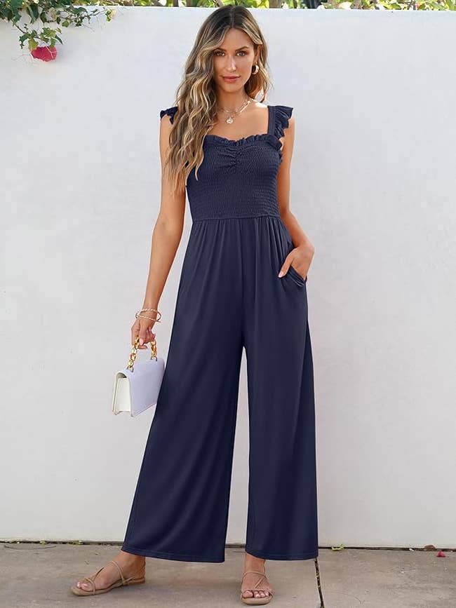 Promising review: "I wasn’t sure about this jumpsuit, but thought I would give it a try. I was so glad I did because it is so cute!! I love the way it fits, and it looks amazing! Love the ruffle straps, they add such a cute little factor and dress it up a bit!" —Jonesboysfarmgirl