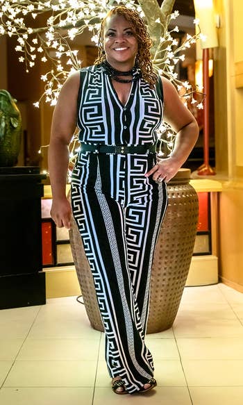 Promising review: "I bought this jumpsuit for a work holiday party, and it was everything! I received so many compliments, and it was beyond comfortable. The zipper is a little catchy, but nothing unmanageable. In my opinion, it did run a little tighter in the hips, but not enough to where I would size up. :)" —Karis S.