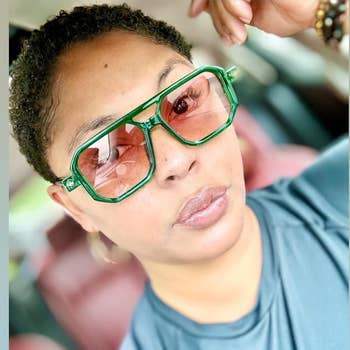 Promising review: "Wow! Love how these sunglasses look. Feel like a superstar. They fit great, not too big. They don’t slip. They are lightweight and the frames are not too thick. I like the lighter lenses; everything is very clear. I wasn’t squinting with them on so I would say the sun protection is good. They came with a cleaning cloth as well. I will be ordering in more colors." —Tracey