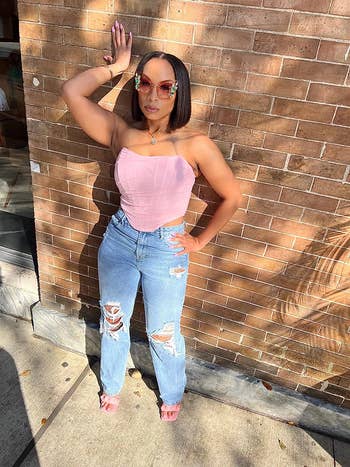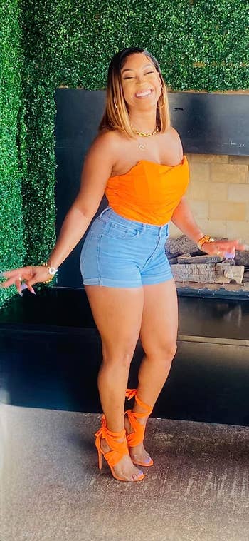 Promising review: "This top is so cute on and is supportive enough for large chest sizes to wear a strapless bra. I am a 38DD and the 12–14 worked perfectly for me." —Bianca