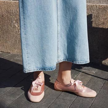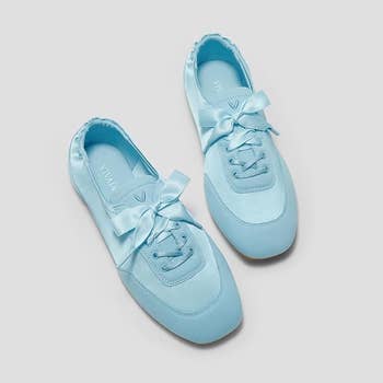 Promising review: "So comfortable and cute! Have two types of laces, and I wear them with both laces in! A light color so you can see dirt a lot, but I wouldn’t change it. Pink looks amazing and so many people complimented these shoes in the street. They make my feet feel like a ballerina." —LGLife