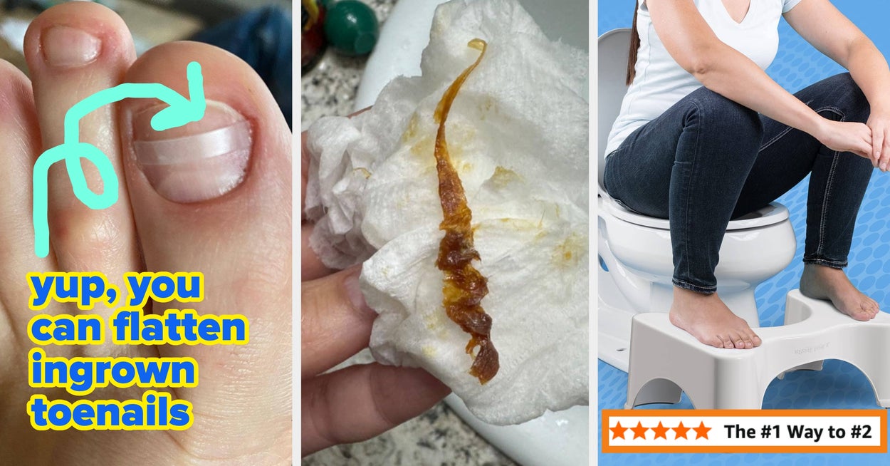 We hope you love our recommendations! While every product is independently chosen by our editors, BuzzFeed and our publishing partners may collect a share of sales or other compensation from the links on this page. You can read more about how our affiliate partnerships work in our Editorial Standards & Ethics Guide. All those issues you’d rather keep private, from hemorrhoids to tonsil stones to stinky shoes, actually have solutions. Promising review: "Do not hesitate to try this product if you have a hard skin problem on your feet. It takes a few days to see a difference, but now I can see a change. Just like that, the skin on my pinky toe is not rock solid anymore. Bye bye, pain — and I am not joking." —Majda Get it from Amazon for $8.99 (also available as a two-pack). Promising review: "I used this product years ago and had the most amazing skin, but I assumed it was mostly genetics. Now that my skin is showing signs of aging, I decided to give it another try — and I’m so glad I did. My skin is transforming daily. They say your skin can rebuild itself, and it really does — especially when you remove the buildup of dead skin cells. I’ve been using it morning and night, and I genuinely look younger. My skin feels polished, my pores are noticeably smaller, and I need much less makeup. Such a fantastic product — highly recommend!" —Sweet Caroline Promising reviews: "I have only used the two original pens that I purchased and can already see an improvement. I am older than 60 and drink coffee daily and red wine weekly." —vicki houska "I have extremely sensitive teeth from over-whitening in high school but this product has been such a lifesaver! I am a daily black coffee and red wine [drinker] so my teeth have taken a toll as far as staining goes. Seriously, I was very hesitant on getting this because of how sensitive my teeth are but I wish I got it sooner! This is such a great product!" —Mimi Doherty Get a two-pack from Amazon for $14.48 (also available individually and in a four-pack). Read more about constipation relief at home, including using a squatting position, at Cleveland Clinic. Plus, read more about hemorrhoids (including how the Squatty Potty can be useful) at the Mayo Clinic. Promising review: "You need a Squatty Potty. Let me rephrase that, you and the rest of the world NEEDS a Squatty Potty. Because let’s face it, who wants to be hunched over a toilet for 30 minutes to an hour, staring into their phone or reading miscellaneous shampoo bottles while waiting for their butt load to finally drop? NOT I, POPEYE. Not I. That’s why I changed my life by getting a Squatty Potty almost three years ago. Why am I writing a review now one might ask? Because dear reader, I’ve been too busy living life outside of the bathroom walls! Pooping takes no time at all now! Let’s face it, our ancestors had been squatting for eons. So what are we doing sitting all high and mighty on a porcelain throne with our legs dangling? We are designed to squat for optimal elimination. No this isn’t some gag product, or something you should skip out on. This is literally the best way to poop. I can really tell the difference when I’m not using one, and it’s not pleasant. You owe it to yourself to have the best poops of your life. SO TREAT YO SELF to this Squatty Potty. Step your 💩 game up!" —LesLeaLuvShopping Get it from Amazon for $24.99 (available in two sizes and as a two-pack). Also, check out the sleek acrylic style for $79.99. Read more about essential oils and morning sickness at Mayo Clinic, peppermint oil and nausea in one small study at the National Library of Medicine, and aromatherapy at Cleveland Clinic. Promising reviews: "I am obsessed with these! As someone who suffers from frequent nausea, these are a lifesaver. I always bring one in my purse on any long car rides, plane travel, etc. I even keep one at my desk. This is my go to for nausea and it works pretty much immediately. I have recommended it to many people now who love it too. It’s easy to use and super small so easy to put in your pocket and have whenever you need it. Love that it is made with natural ingredients as well." —Heather "Took this on my first cruise. Anytime that I started to feel woozy I’d reach for it. I’m sure the required act of deep breathing helped a lot — and breathing in the fragrance of the essential oil is very calming and effective. Worked for me! Wonderful!" —Willy&Lilly Get a pack of two from Amazon for $12.99 (also available in a four-pack). Promising reviews: "So this product is completely worth the money. The quality is amazing. I didn’t notice any smell after a few seconds of using it. My skin was smooth and bright but not sticky. It works like magic. I have sensitive skin, so I can’t use this product too close to my nose, but in the rest, it's amazing!" —Isabela L "What is this miracle in a jar?! The way my skin is so smooth right after the first use is [wild]. I will buy these for the rest of my life as long as I am breathing. This is now my FAVORITE skin product besides my sunscreen. Love, love, loooove" —Ryan M. Get a 70-pack from Amazon for $16.80 (available in six other styles). Reviewers are also super impressed by how fast it works! Check out a TikTok of Gold Bond in action. Promising review: "This cream has tightened the skin around my neck beyond my expectations. I’ve been using it daily (morning and evening) for over two months and still have product left. I’ve even tried it on my face and it gives me a bit of a 'facelift.' I’m officially a Bond girl. A bit sticky to the touch after a few hours of wear, but that doesn’t bother me. Will order again." —AP Wang Get it from Amazon for $11.97 (also available in a three-pack). Promising review: "I had a hideous wart on one of my left toes that just wouldn't go away. I tried cutting it off and applying a peeling solution to it, but it came back with a vengeance. It was a cause of irr