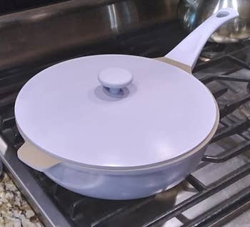 Promising review: "My husband used this pan for the first time a couple of nights ago, and it was perfect! Enough capacity for the cheesy potato soup he was making (we always make enough for leftovers with soups and stews), no issues with sticking at all, got up to temperate, and held it well. It's lightweight, which is wonderful for such a large pan! Well constructed and a good flat surface on top and bottom for easy cooking and perfect heat coverage." —Patricia A Rufus