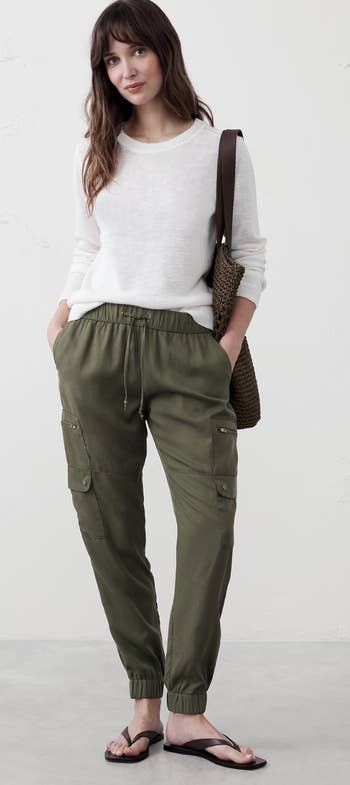 Promising review: "I’m obsessed with these pants. I wear them to work, out with my kids, to the food store, and to bed. I have them in black and champagne 🥂 with gray and cream on the way as we speak. They look very put together with their silk cami with a cashmere cardigan or a simple white tee. Very versatile." —Leslie