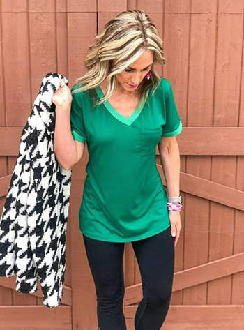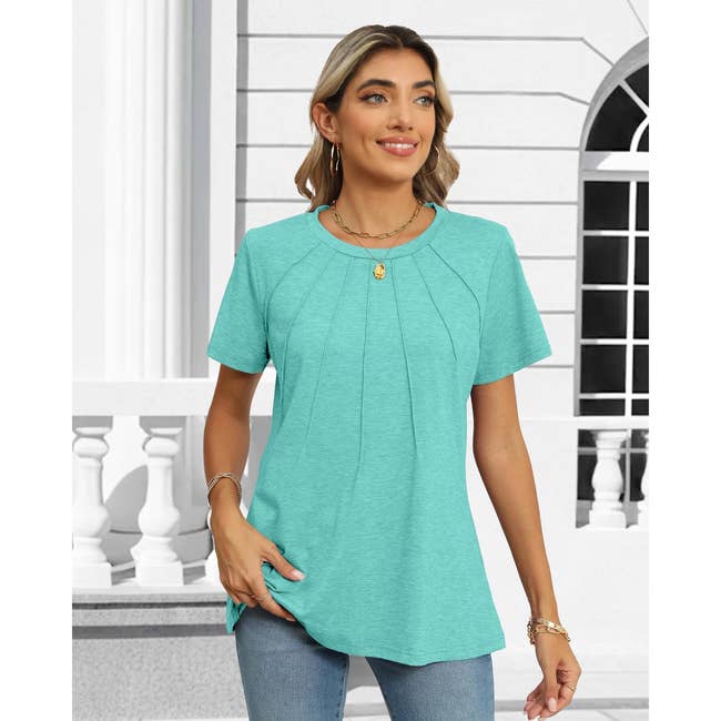 Promising review: "I absolutely love these shirts! I have three of them! They are good for walking and running errands and casual activities! I just received the green one yesterday, and I am wearing it today to a casual lunch and a walk later on in the afternoon! These shirts are very versatile! The green is very rich and very comfortable! I'm pairing it with a cute pair of capris and a pair of Tom's flats! I'm ready for anything! Buy one and now while they are on sale!" —Christina
